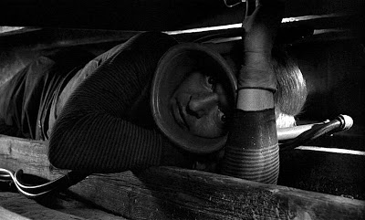 The film begins with a phonograph (that’s a record player for all you kids out there!) belting out a tune. The record quickly comes to an end, and we then see a man, Paul Decker (Peter Van Eyck) and he’s taping all the windows shut, along with any place in the room that might let in/out air. We see a woman, lying on the couch, unconscious. He hears voices outside of the home, and notices two people (servants) heading inside. He quickly dons a snorkel, and attaches two long tubes that were hidden inside a secret panel in the floor, then creeps inside the hidden panel, and waits. Within minutes, the two servants try to enter the room where the woman is lying unconscious (and Paul is in the hidden compartment), but the door is locked. The female servant sniffs around the door (presumably smelling natural gas), freaks out, and gets the male servant to help break the door down. They enter, and are almost overpowered by the gas, but manage to open the windows. The woman, is already dead though, and the family vacation home in Spain is now a crime scene.