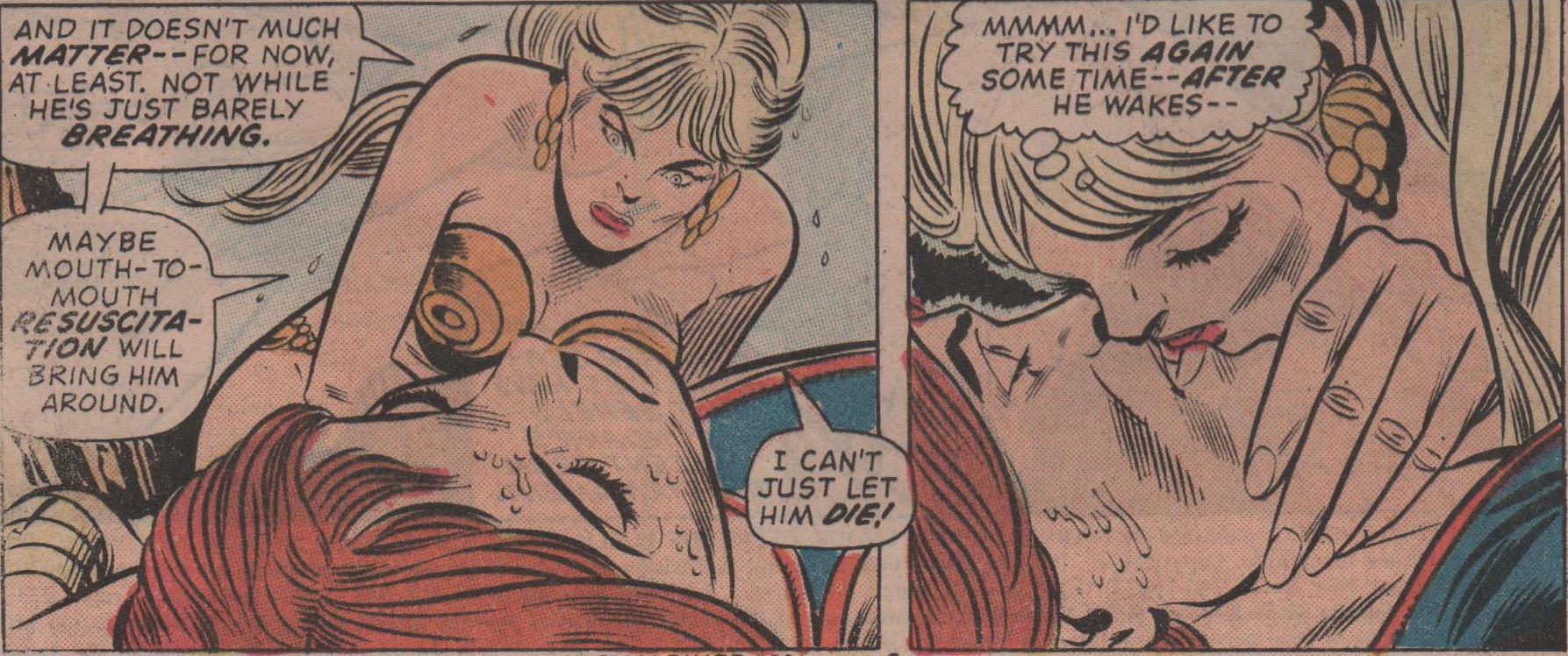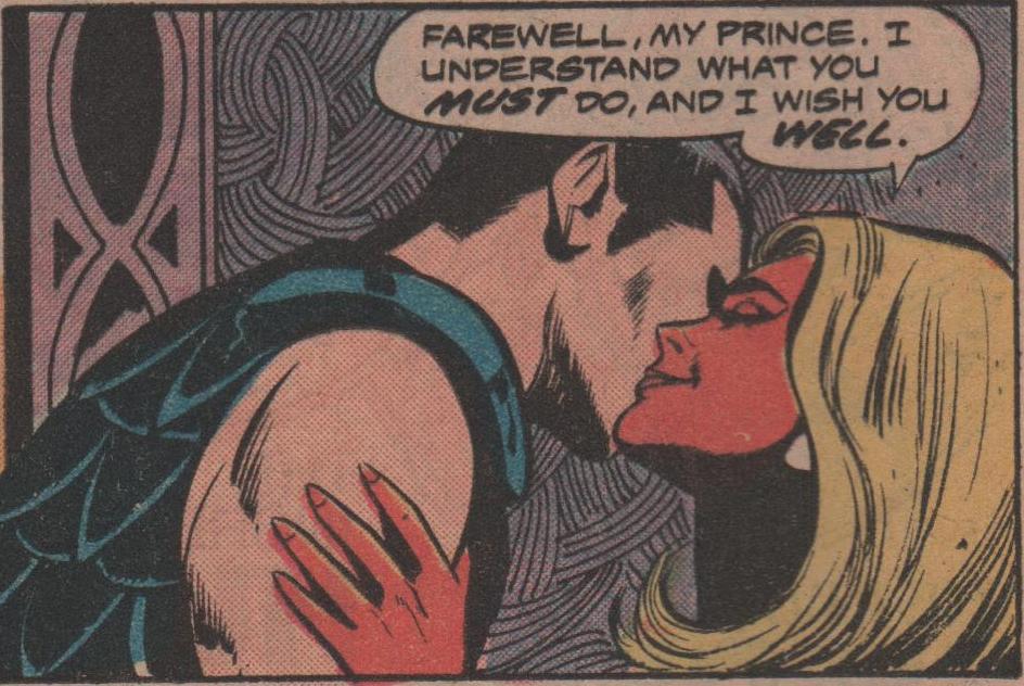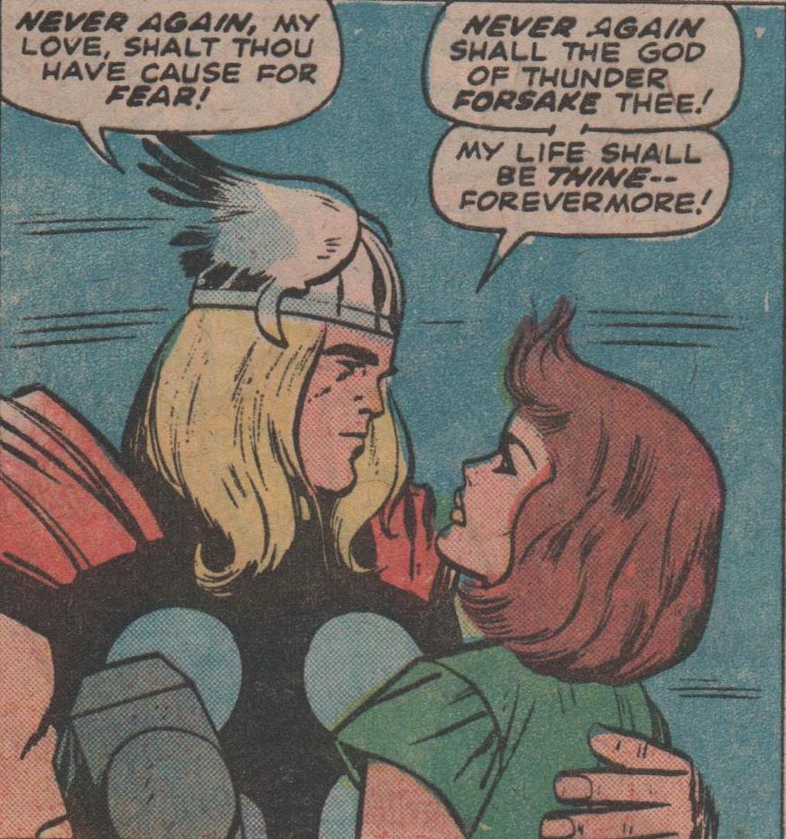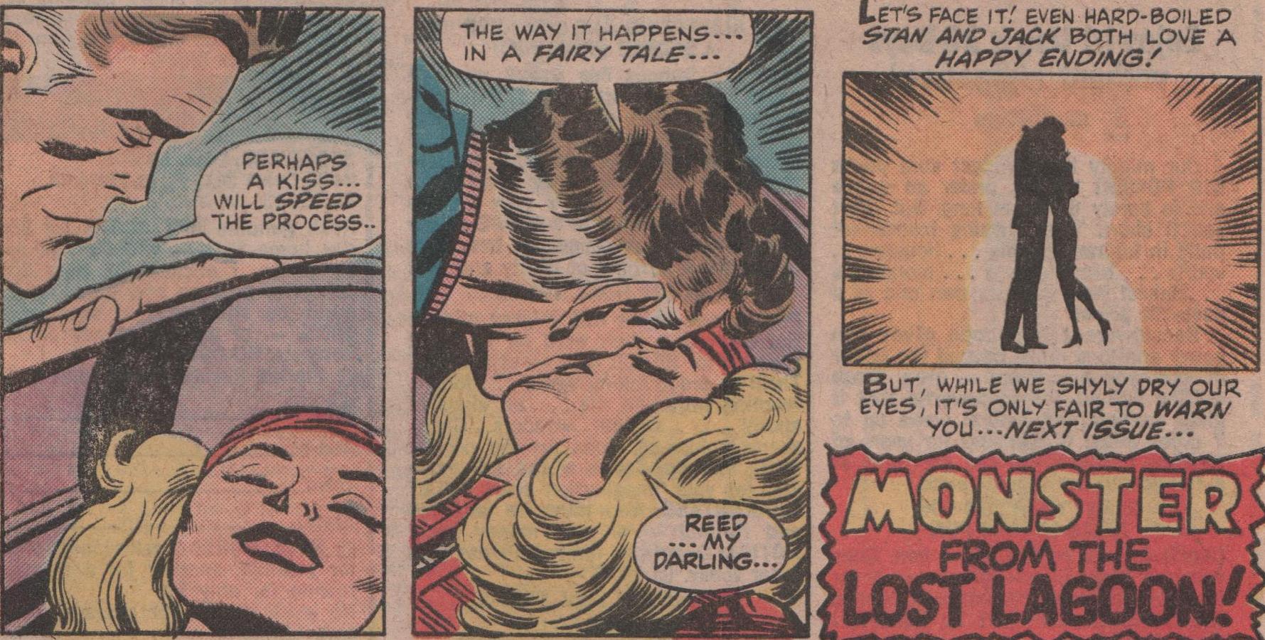 In honor of Valentine’s Day, this post will show all the love in the Marvel Universe! No rhyme or reason (OK, other than starting and finishing with the Black Knight), just some good old-fashioned panels showing heroes and heroines of all different walks getting their love on! I found quite a few Fantastic Four panels, and believe it or not, some horror panels, but the variety is here for everyone! People all over the world…join hands…start a love train.., love train! Enjoy!