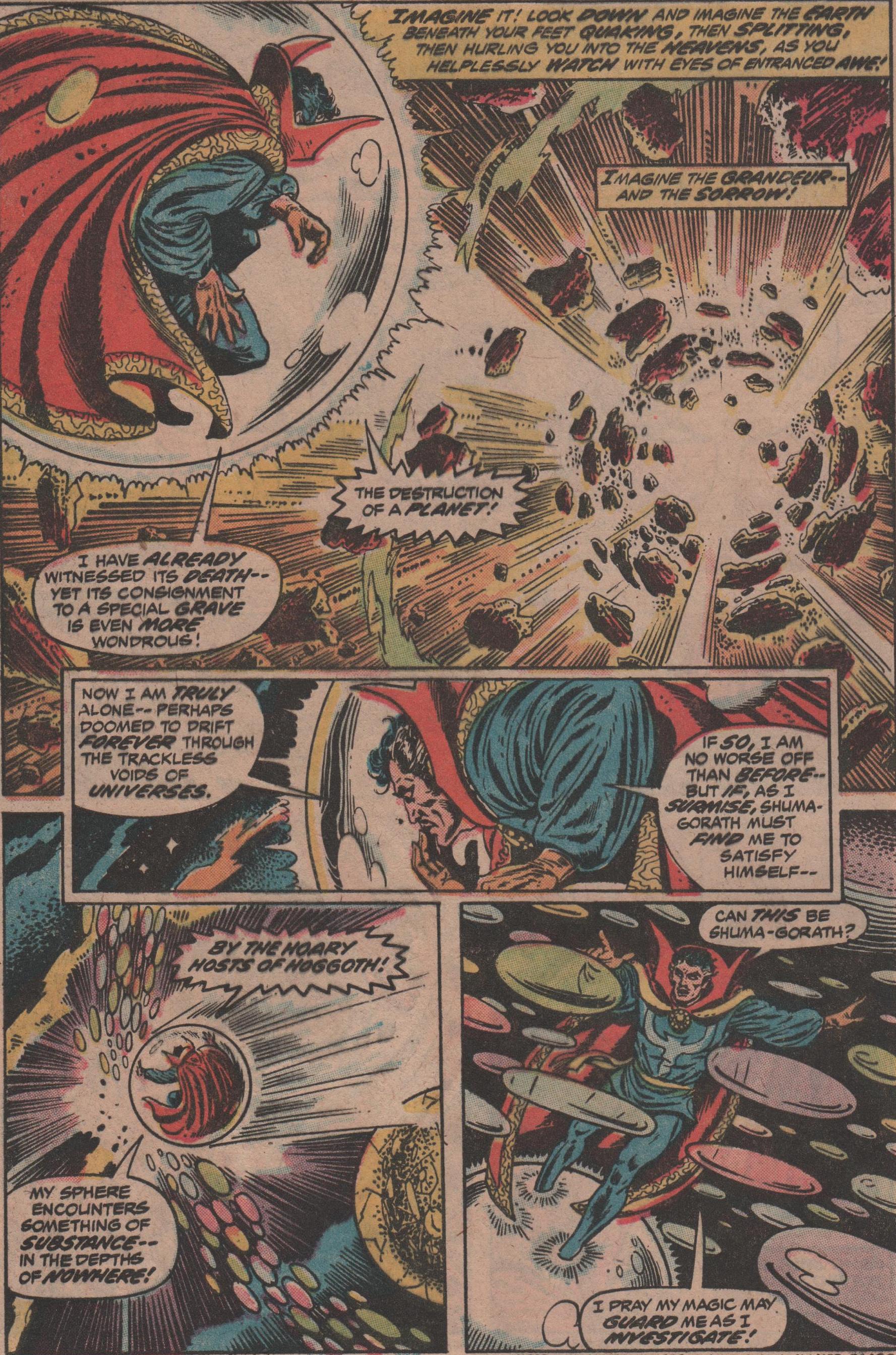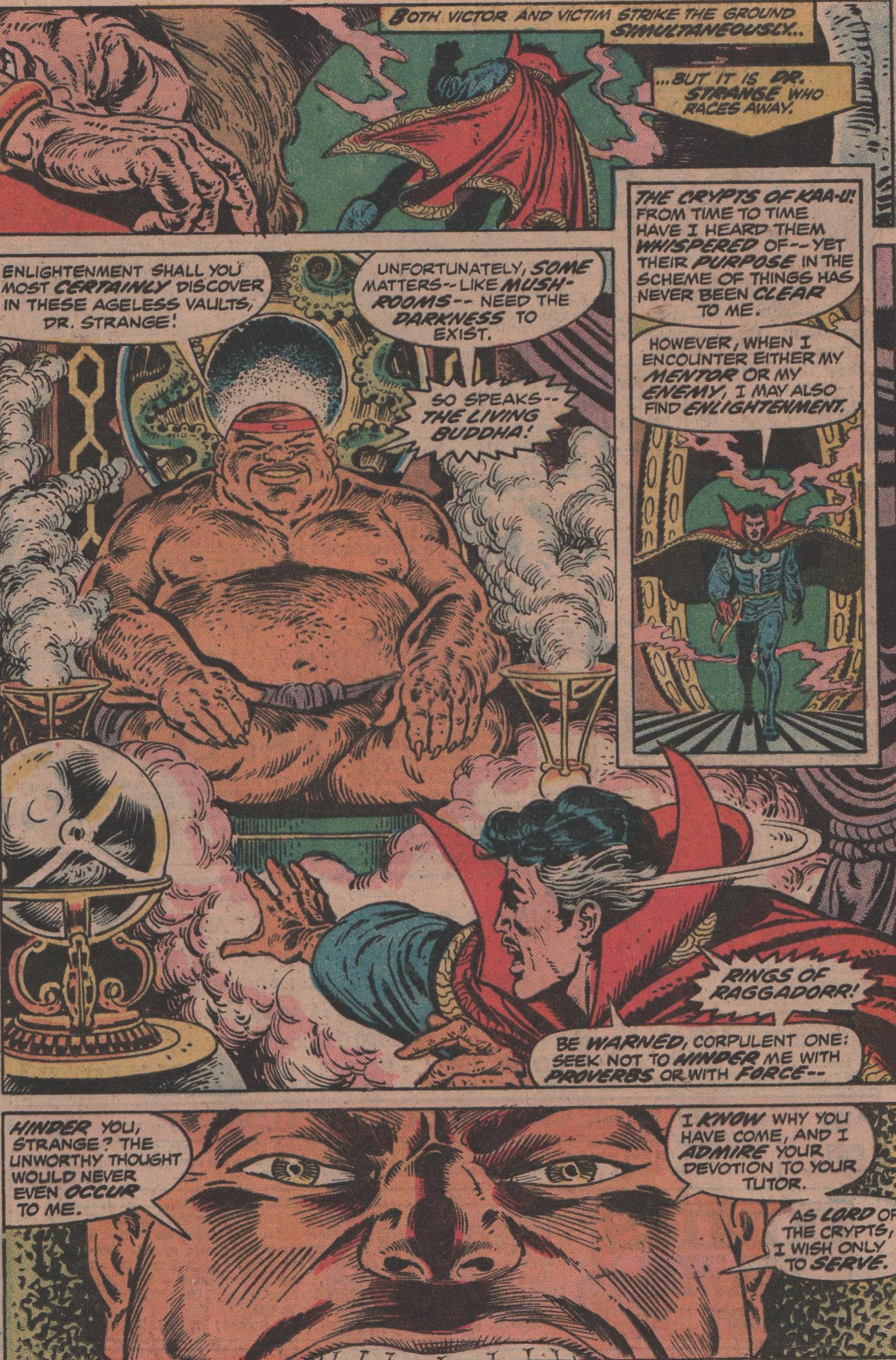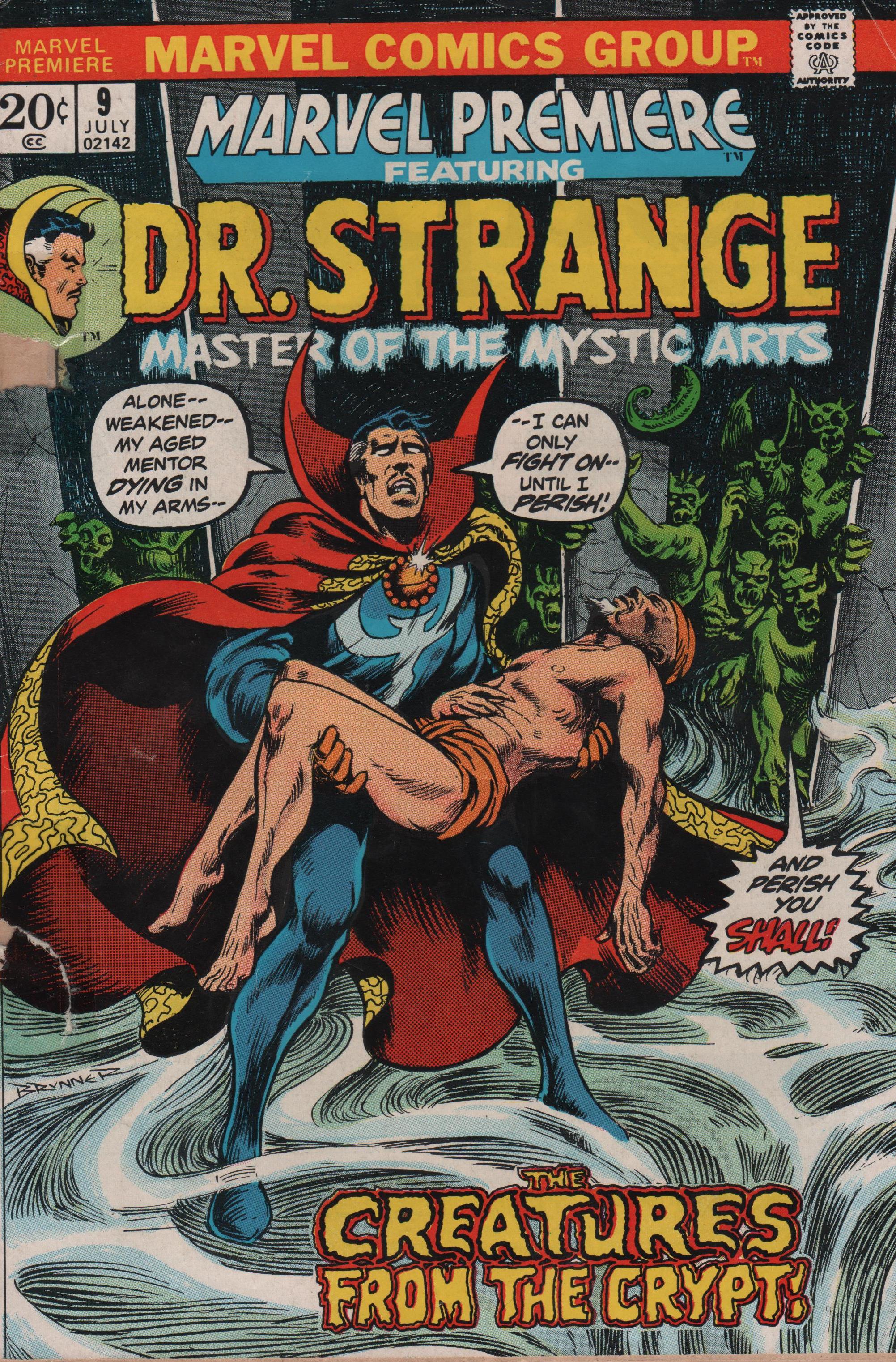 As my look at Marvel Premiere marches on (specifically the Dr. Strange issues), this issue is a momentous one because of the arrival of the new creative team going forward. Until now, a few different creators were involved, and they did an admirable job, but now, the theme takes a bit of a turn, and the Doc must not only continue to fight against Shuma-Gorath and its minions, but also try to deal with the death of his mentor, the Ancient One!