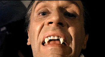 The movie starts out with a funeral at a small village somewhere in Europe. The villagers are shocked when a certain man shows up. The creepy looking guy, Professor Zimmer (Clifford Evans) walks over the grave, shovel in hand, and plunges it into the casket! We hear a shriek come from it, and then see blood spurting out of the cracks. At first, the villagers don’t seem shocked, that is until the blood comes out. The camera then slowly goes into the casket, and we see the recognizable teeth of a vampire. Cue opening credits…