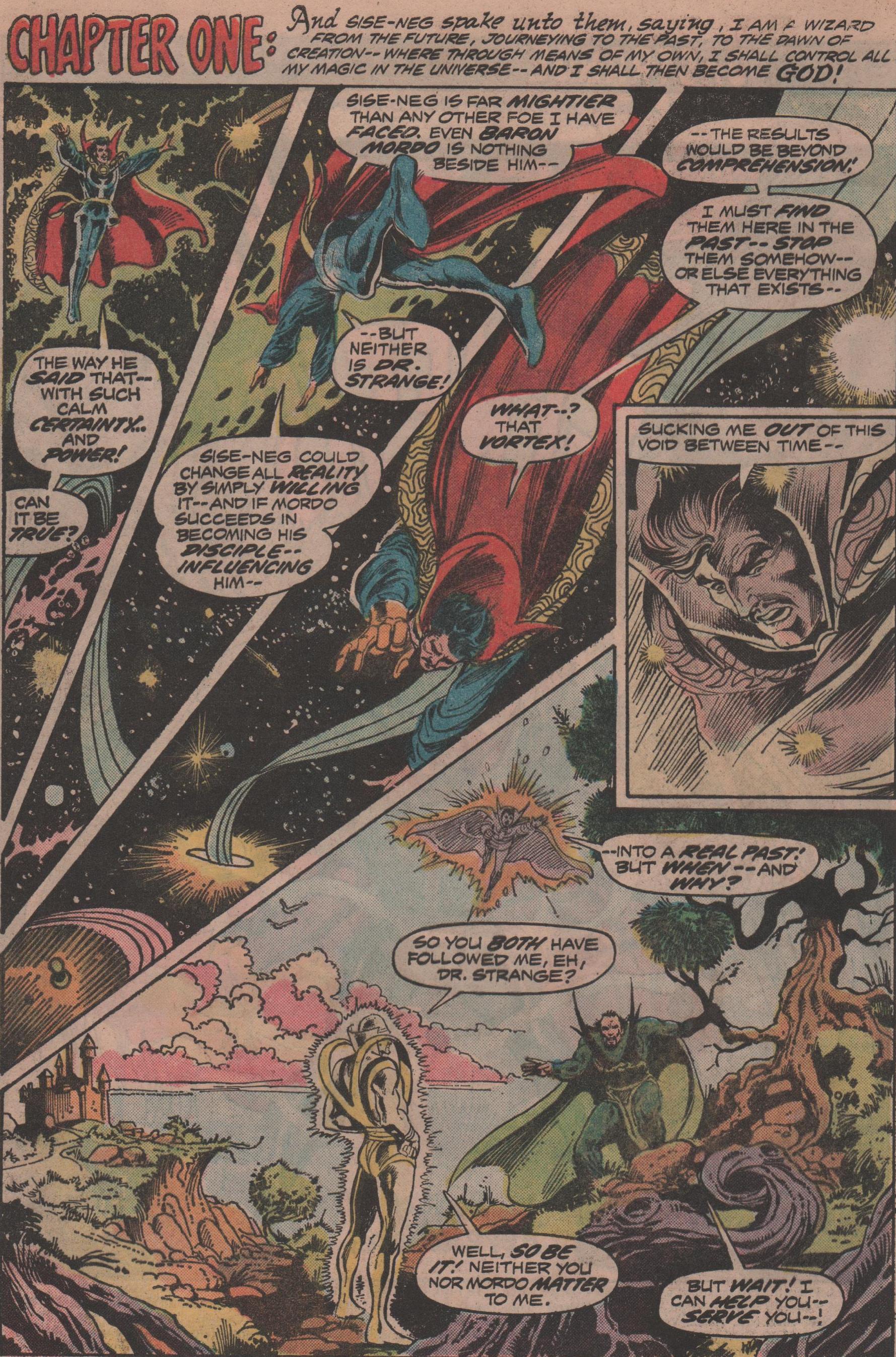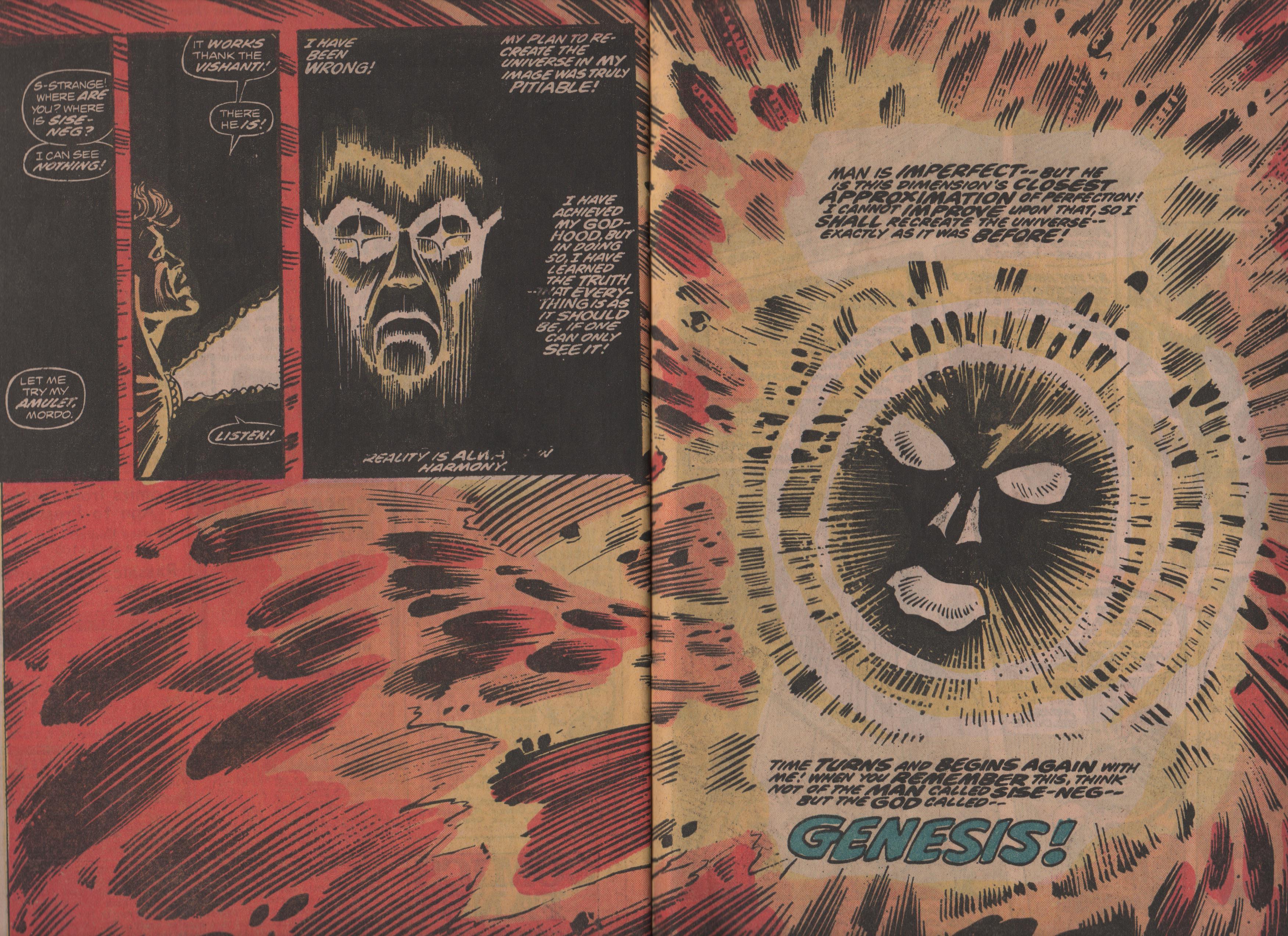 To close out my look at the Doctor Strange issues of this title, we get to see a seemingly omnipotent being that is hell-bent on rewriting all that is/was. How will it do this? By traveling back to the beginning of time, and using its immense power, this being will in fact, attempt to usurp the creator of all life! As this being, Mordo, and Strange, continue through the vast halls of time, we see things such as knights, dragons, and even dinosaurs! There’s a bit of a morality play in this story as well, definitely more thought-provoking than the usual fair of that time period.
