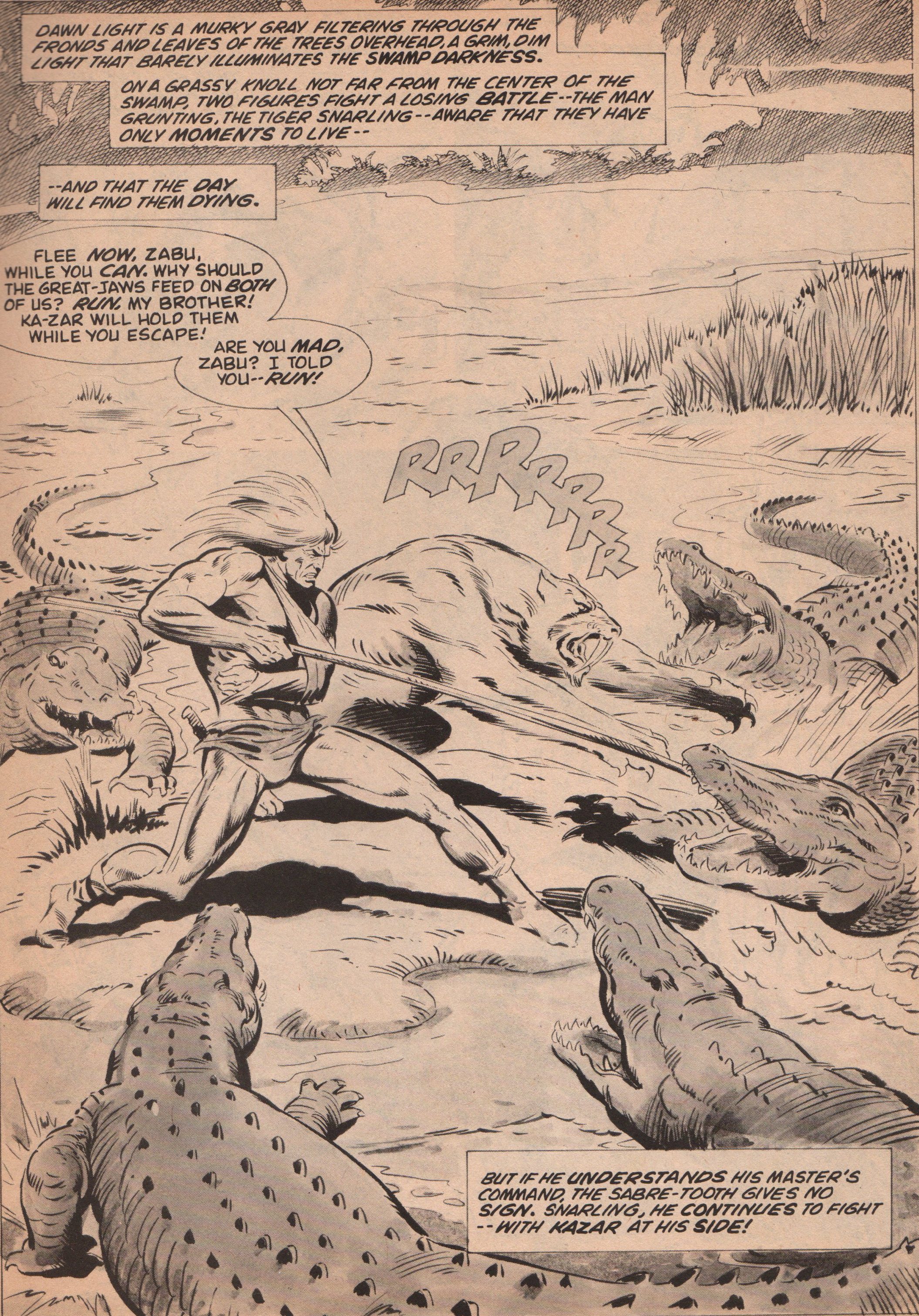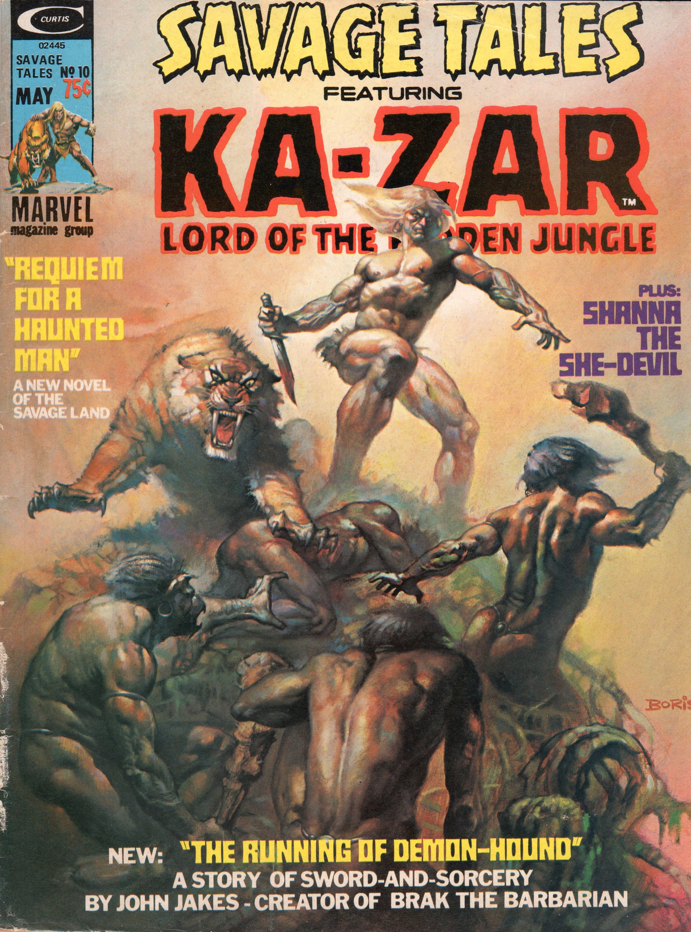 Savage Tales was a good mix of action, adventure, sword and sorcery, and even horror. This specific issue gives us a Ka-Zar story (“Requiem for a Haunted Man”), and the creative team on that one is utterly fantastic. Gerry Conway (writer) and Russ Heath (pencils) are joined by the studio known as the Crusty Bunkers (inks), to give us the lord of the Savage Land, Zabu, and an unfamiliar face, as they fight savages, crocodiles, and more! A prose story (The Running of Ladyhound) by none other than sci-fi scribe, John Jakes (with a couple of images) and then a tale starring Shanna the She-Devil! This tale was scripted by Carla Conway (first wife of Gerry Conway), and the art team is Ross Andru and Vince Colleta! Not too bad, eh? Oh, and if that wasn’t enough, we get a cover by Boris Vallejo, as well!
