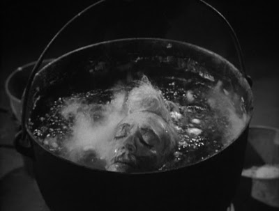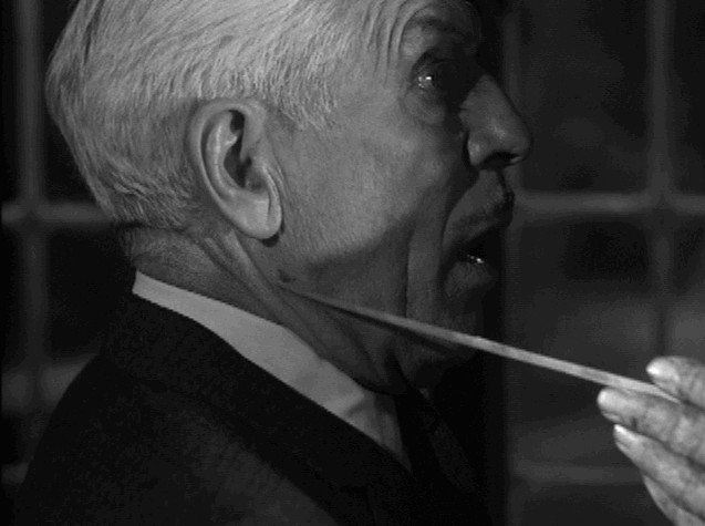 The film begins with an older gentleman named Jonathan Drake (Eduard Franz) in his study. He has a book opened, and the passage reads…”the evil that men do lives after them.” We then focus on the man himself, as he’s deep in thought, and obviously afraid of something. In his hand he holds a shrunken head! A strong breeze whips through the room, and the candles are blown out. A young woman enters the room, and we find out that she’s his daughter, Allison (Valerie French). She questions him as to his trance-like state, but he won’t tell her. She tells him that her uncle Kenneth called but she’s having trouble remembering what he said exactly. Jonathan knows something is up, so he sends a message to his brother that he’s on his way to see him (the trip takes two days).