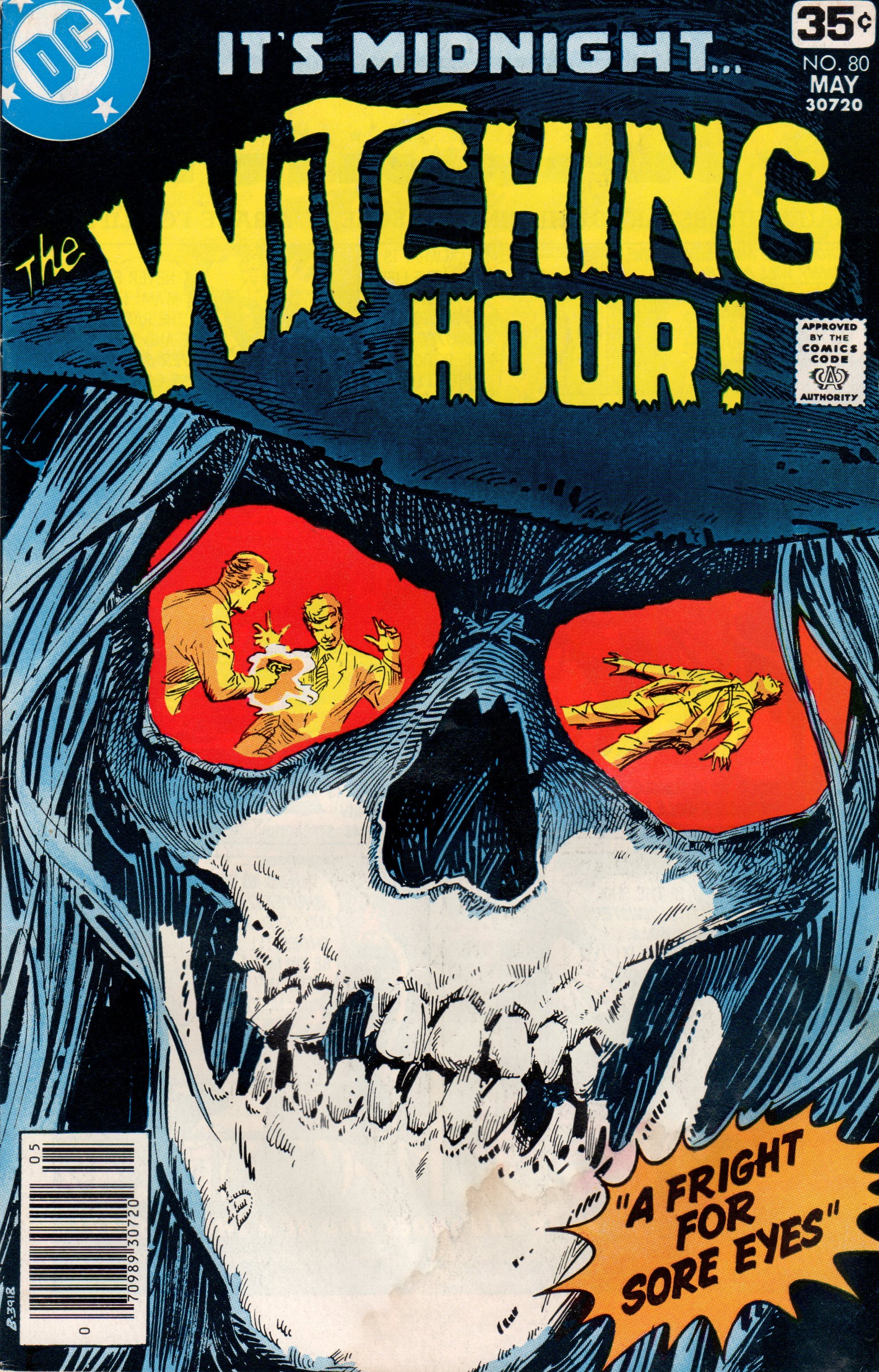 Back so soon? And for more fright I see…well, lets see if some DC comics can do the trick! Their horror titles in the 1970’s were awesome, and anthologies like The Witching Hour! were right at the top. Out of all the DC horror titles I own, this is the one that I own the most issues of, and that is a good thing. Top to bottom the series had the standard fair of the times, but always slanted towards the side of death. Whether it was supernatural (as it was most of the time), or just your garden variety psychopath, the book delivered. Oh, and skulls are a major cover theme!