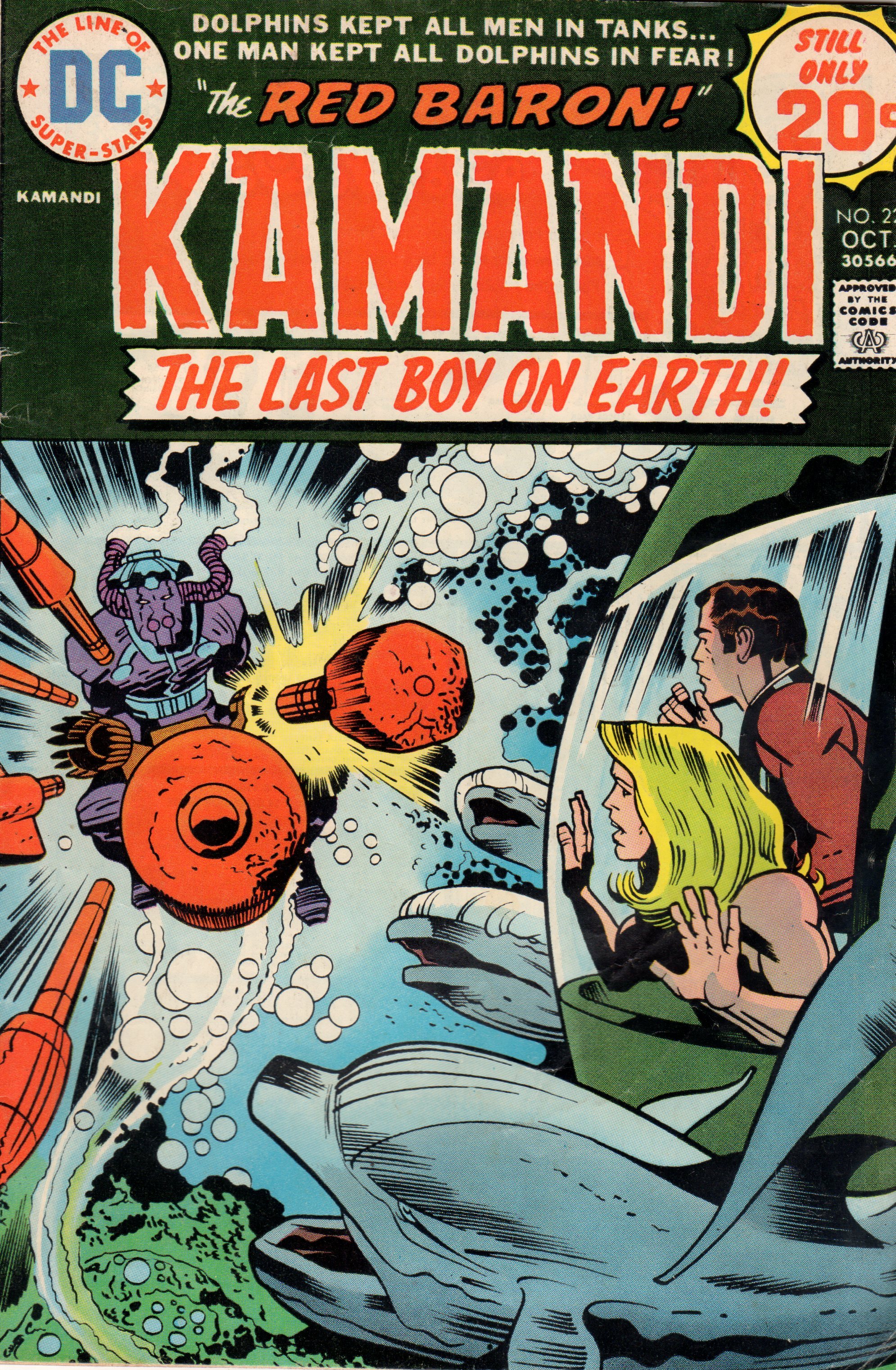 A post-apocalyptic world dominated by talking apes with an odd assortment of other talking creatures such as killer dolphins…yep. The unbridled imagination of Jack “King” Kirby (writer, editor, penciler) is something of wonder to us mere mortals, and it has been from his earliest works to his creations in the 1970s- work such as Kamandi, The Last Boy on Earth!
