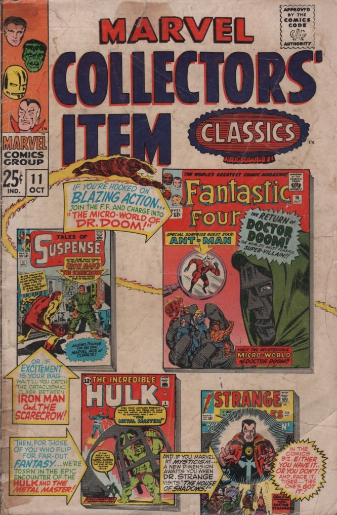 The Silver Age is when it all turned around for Marvel comics. The company went from vanilla books starring monsters, western heroes, and cheesy romance characters, to exciting titles like the Fantastic Four, The Incredible Hulk, The Amazing Spider-Man, etc. After just a few short years, Marvel had bona-fide hits on their hands, so they began to issue reprints of these stories (just 4 years after they were first printed!). These books are great, and you get four stories in each one! Classics starring the Fantastic Four, Iron Man (Tales of Suspense), The Incredible Hulk, and Dr. Strange (Strange Tales)! You get the best from Jack Kirby, Steve Ditko, Don Heck, Stan Lee, and more! Rather than droning on about how great these books are, I’ll just let the images do the talking for me!
