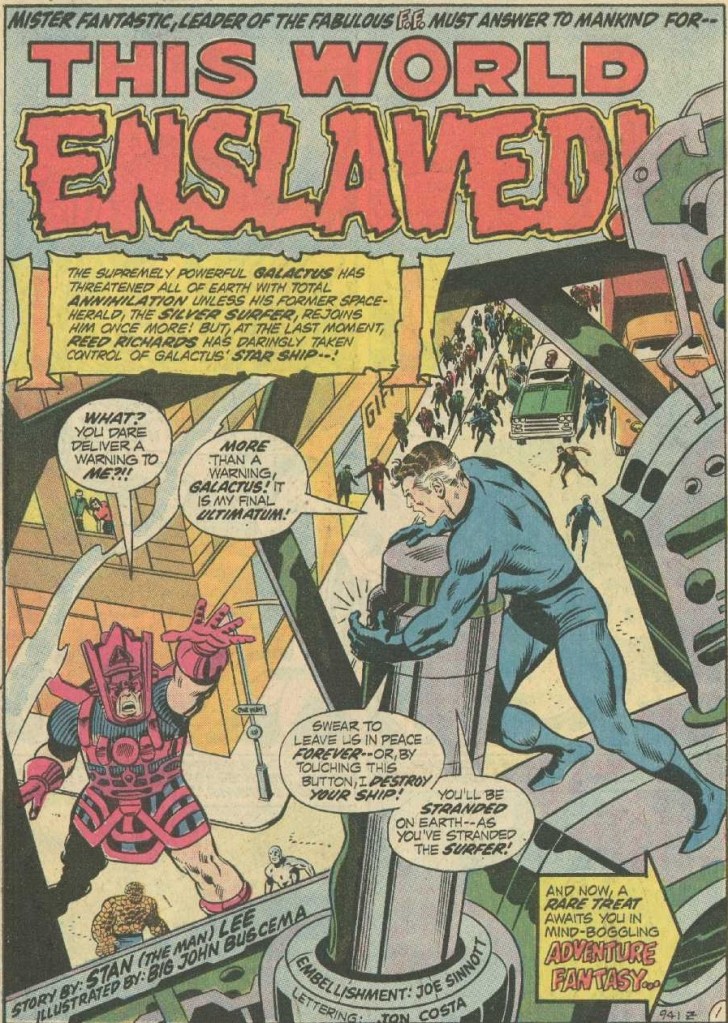 In this oversized tome, the team is beset by gun-toting maniacs, a strange being from the stars with god-like powers, and then the final threat is revealed, and the team stands in awe of Galactus, Devourer of Worlds! Special appearance by the Silver Surfer!