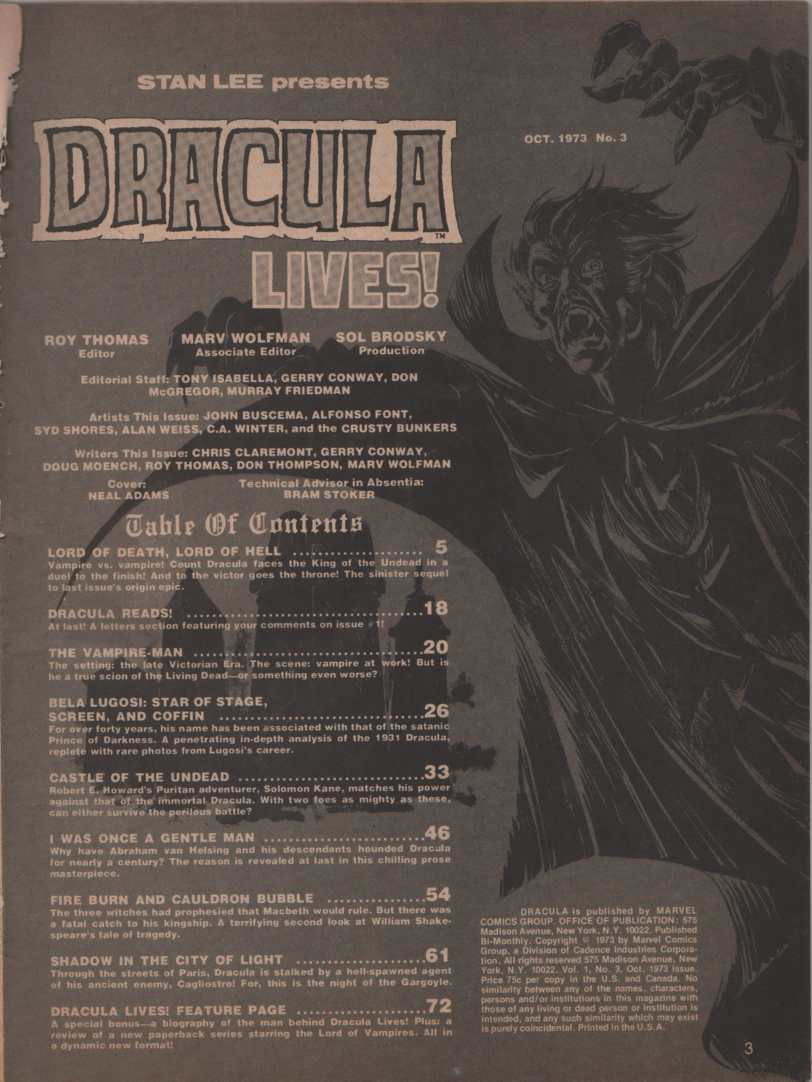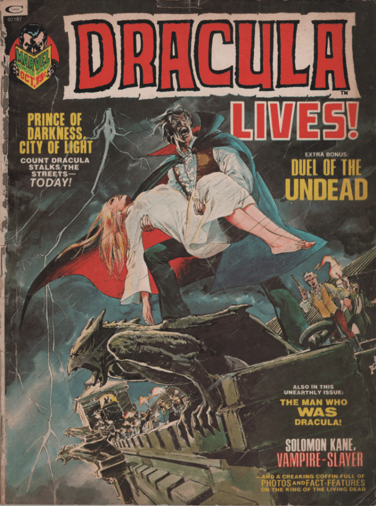 Is there a more iconic horror figure than Dracula? Probably not, and after acquiring another issue of this spooky mag, it’s time to dive into it! October is here, and the horror mags from the Bronze Age are a great way to celebrate the season. Vampires, witches, a gargoyle, and Solomon Kane! A great issue for sure that brings a solid spotlight on Dracula not only in the Marvel universe, but also in contemporary fiction and film.