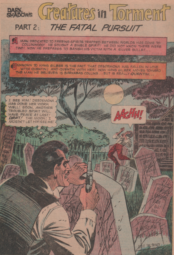 Credits include (for Boris Karloff 39 & 41)- Len Wein, Joe Certa, John Celardo, Win Mortimer, Jack Sparling, Giorgio Cambiotti, Oscar Novelle, Luis Dominguez, and a few more that are uncredited. Dark Shadows (9) – painted cover by George Wilson, interior art by Joe Certa, written by D. J. Arneson, and letters by John Duffy.