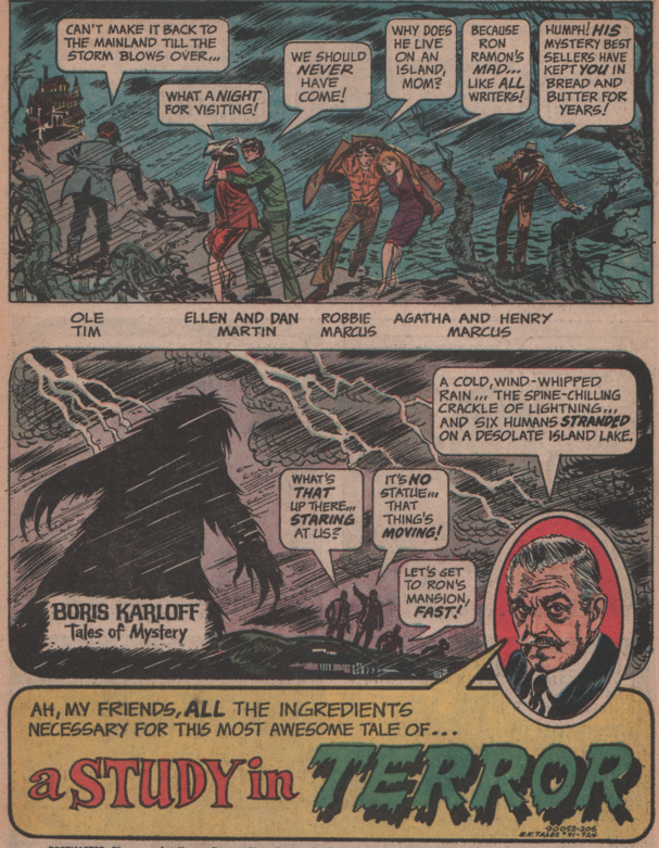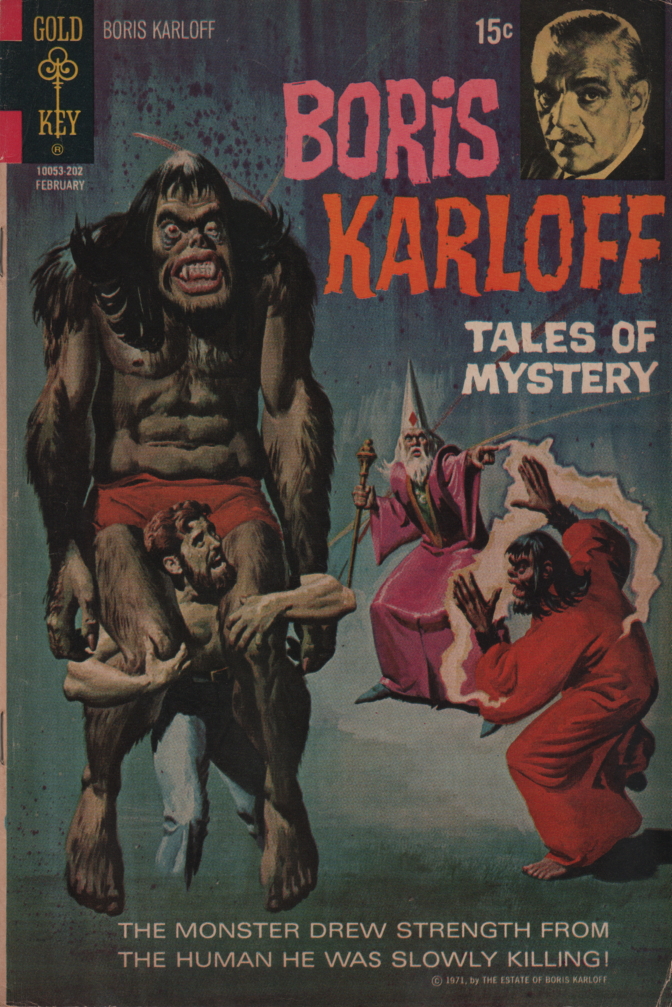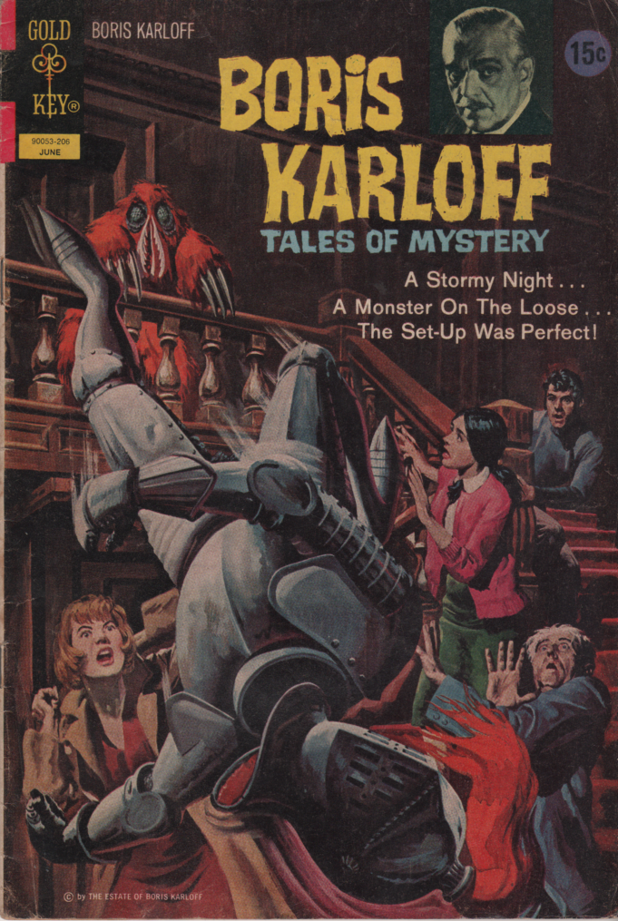 Everybody knows about the “big two” in comics, plus hardcore horror comics like EC comics titles, but there were others and one of them was Gold Key Comics. Western Publishing company produced children’s books for a long time then threw their hat into the ring of comics in 1962. They had some original series but were more famous for their licensed properties, such as Buck Rogers, Disney characters like Donald Duck, Bugs Bunny, Popeye, etc. Two more of those titles being Dark Shadows and Boris Karloff Tales of Mystery.