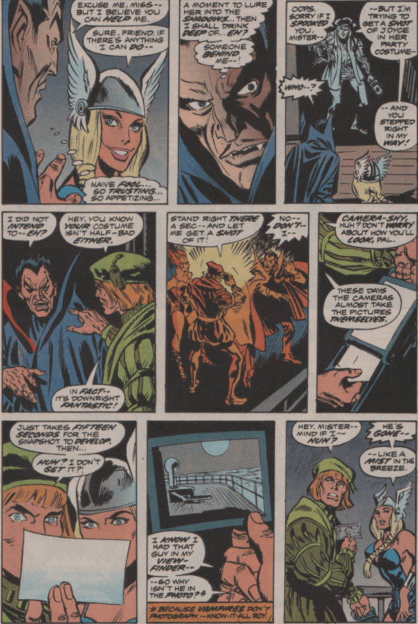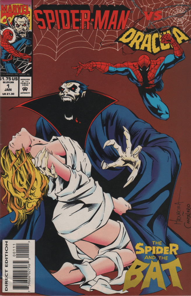 Back in the 1990s, there was still a good bit of material being reprinted from decades earlier. Case in point, Marvel Tales ran until 1994 (starting in 1966)! Almost thirty years of reprinted material, and that feat is nothing short of…dare I say spectacular? There were also one-shots, oversized books, etc., including this one from 1993/4. “The Spider and the Bat” recounts the first ever meeting between the 1970s king of monsters, Dracula, and your friendly neighborhood Spider-Man!
