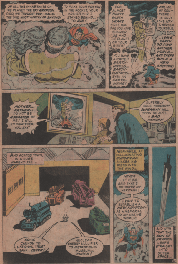 If you’ve ever the read the Superman story “For the Man Who has Everything”, by Alan Moore and Dave Gibbons, this story will make you think of that one immediately. Not because they’re exactly the same, but they do have a bit of a parallel theme between them. At least as far as the villain and his method for antagonizing Superman is similar. I won’t spoil it but attacking someone who has an invulnerable physique isn’t easy. Writer Elliot S! Maggin does a great job at giving the Man of Steel a moment of real weakness in this book. The art team of Curt Swan (pencils) and Bob Oksner (inks) deliver a solid visual story for sure!