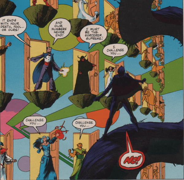 The second story in this issue, gives us “The Showdown!” We see a young upstart sorcerer, Ian McNee, challenge The Sorcerer Supreme himself, Dr. Strange! The young man finds out rather quickly that what you think you want isn’t necessarily something you are ready for! Roger Stern (writer), Charles Vess (art), Ron Zalme (letters), and Glynis Wein (colors) are the great creative team behind this excellent chapter in the Doc’s life.