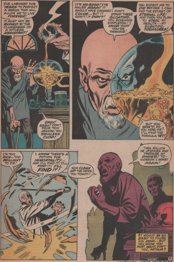 Lastly, Digger introduces us to “A Time to Die!” This one brought to you by Stan Lee (script) and “Big” John Buscema (art), and involves an old scientist that wants to find an elixir that will allow him to live forever. The scientist has an assistant that also has eyes on the elixir! No matter what the genre, John Buscema always looks like a pro. His skills are unparalleled in the Bronze Age.
