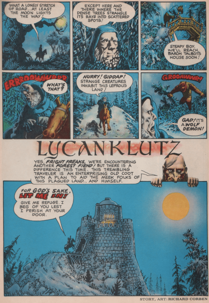 The following story is in full color! yes, that’s right, you get a full color story (whether or not it’s a good thing) about a werewolf by none other than Richard Corben (story and art)! “LycanKlutz,” displays some incredible artwork, but the story is, well…ridiculous.