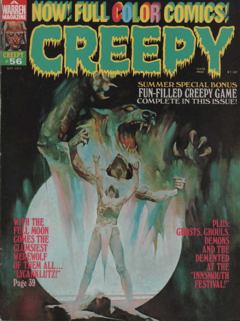 The Warren magazine love continues! In this issue of Creepy, there are some really wild stories! Six stories, to be exact, that will make you absolutely cringe. You’ll see a cat used as a light chain, Satan get arrested (sort of), and a Cthulhu worshiping cult that demands a sacrifice! All of this waits inside with another phenomenal cover by Sanjulian!