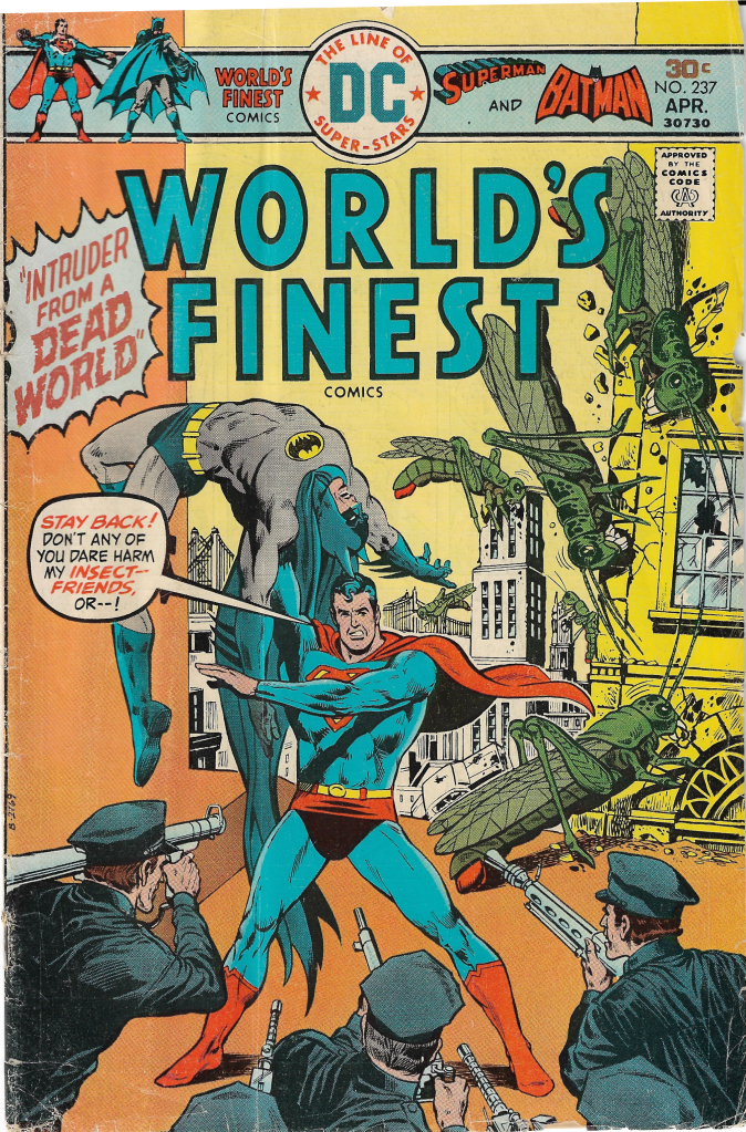 To those on the east coast, good morning! Magazines and Monsters proudly presents another entry into the Zany Haney Hall of Fame! It’s only been two weeks since I spotlighted a story by him, but you can’t get enough of the Haney-verse in your life. When you have Batman and Superman acting crazy, then throw in giant locusts, you’re bound to have a good time.