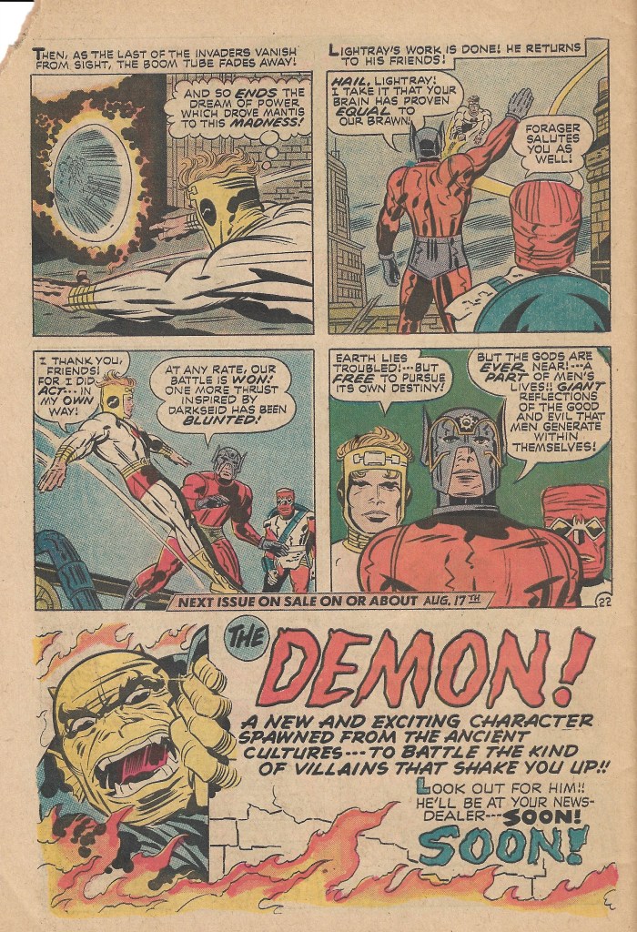 Huge battle scenes, foolish politicians, Lightray, and all the Kirby madness you can handle await inside this comic! Written and pencilled by Jack “King” Kirby, inks and letters by Mike Royer, and colors by Anthony Tollin!