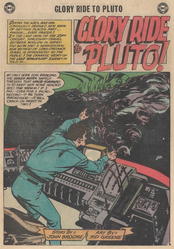 Up next, “Glory Ride to Pluto,” is a feel good story about a pilot on his last voyage, and his son comes along and ends up falling in love. Written by John Broome, with art by Sid Greene.