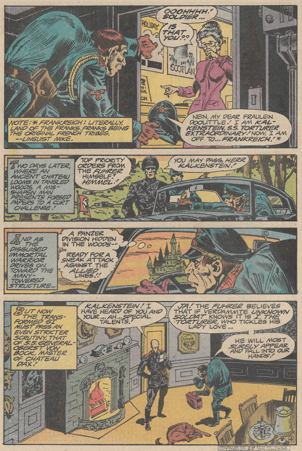 After a peek into the Slow Glass, we see “War Toy!” A group of scientists/doctors are gathered around an operating table, but there patient isn’t a man, but a robot! He’s trained to be the perfect soldier, but what happens when the war is over? Written by Tony Isabella, art by George Pérez and Rico Rival!