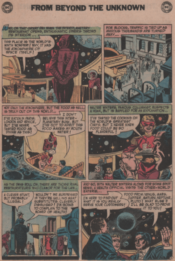 The following story, “Outcast of the Stars,” is an adaptation of a story by Ray Bradbury! We see a man that owns a junkyard with visions of one day traveling to Mars! Art by Joe Orlando (the rest of the creative team as before)!