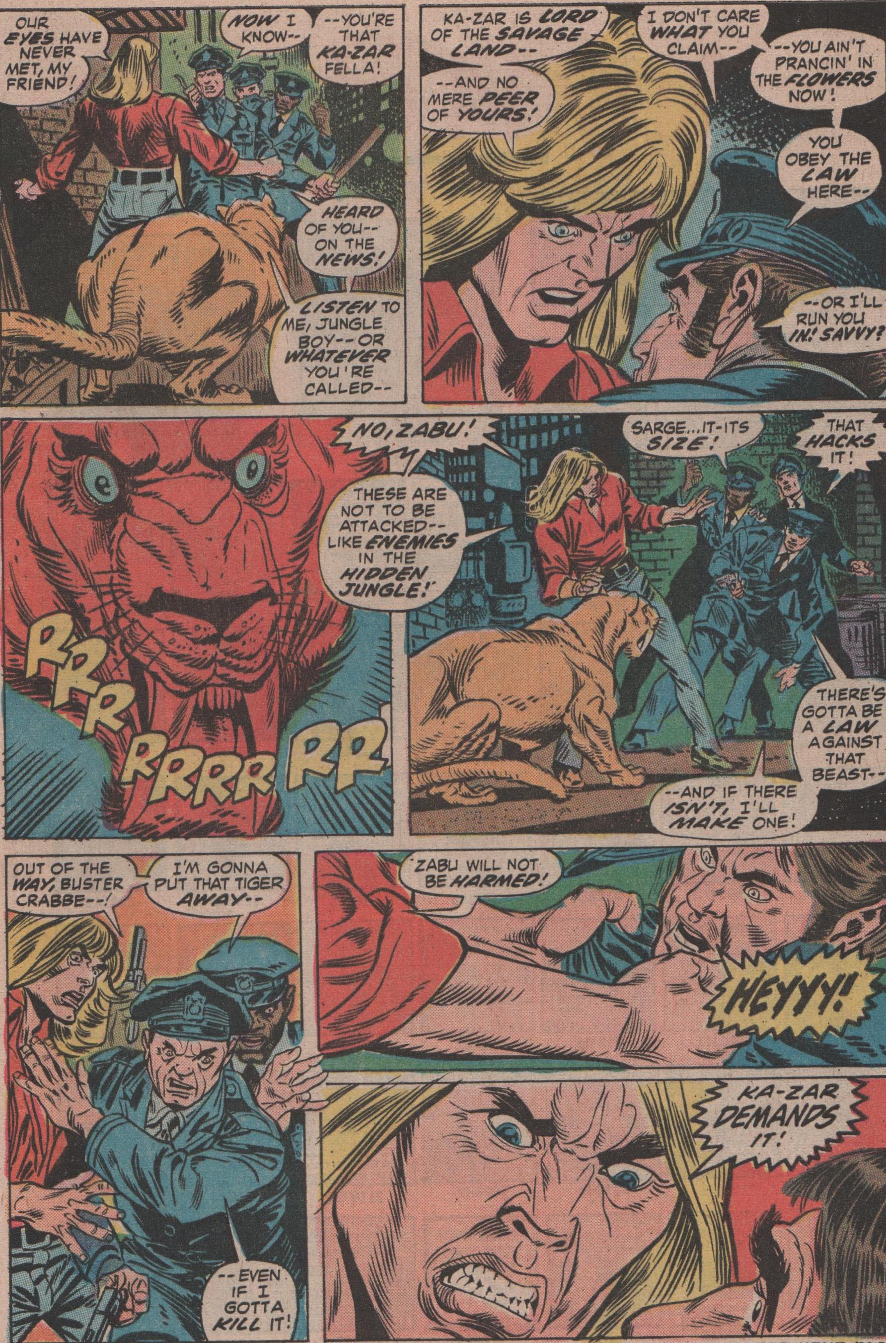 When you have names like Mike Friedrich (writer), Gil Kane (pencils), Tom Sutton (inks), John Costanza (letters), and Roy Thomas (editor), you know you are getting a grade “A” comic book! To make things even better, you get a surprise appearance by Bobbi Morse, as well! She and Ka-Zar share some kind of unique bond, and actually seem to have an affection for one another. This adds a cool angle to the book that you don’t often get in the comics of this era. Do yourself a favor, and grab these issues if you can find them in the discount bins at a con. They’re well worth a couple of bucks in good condition!