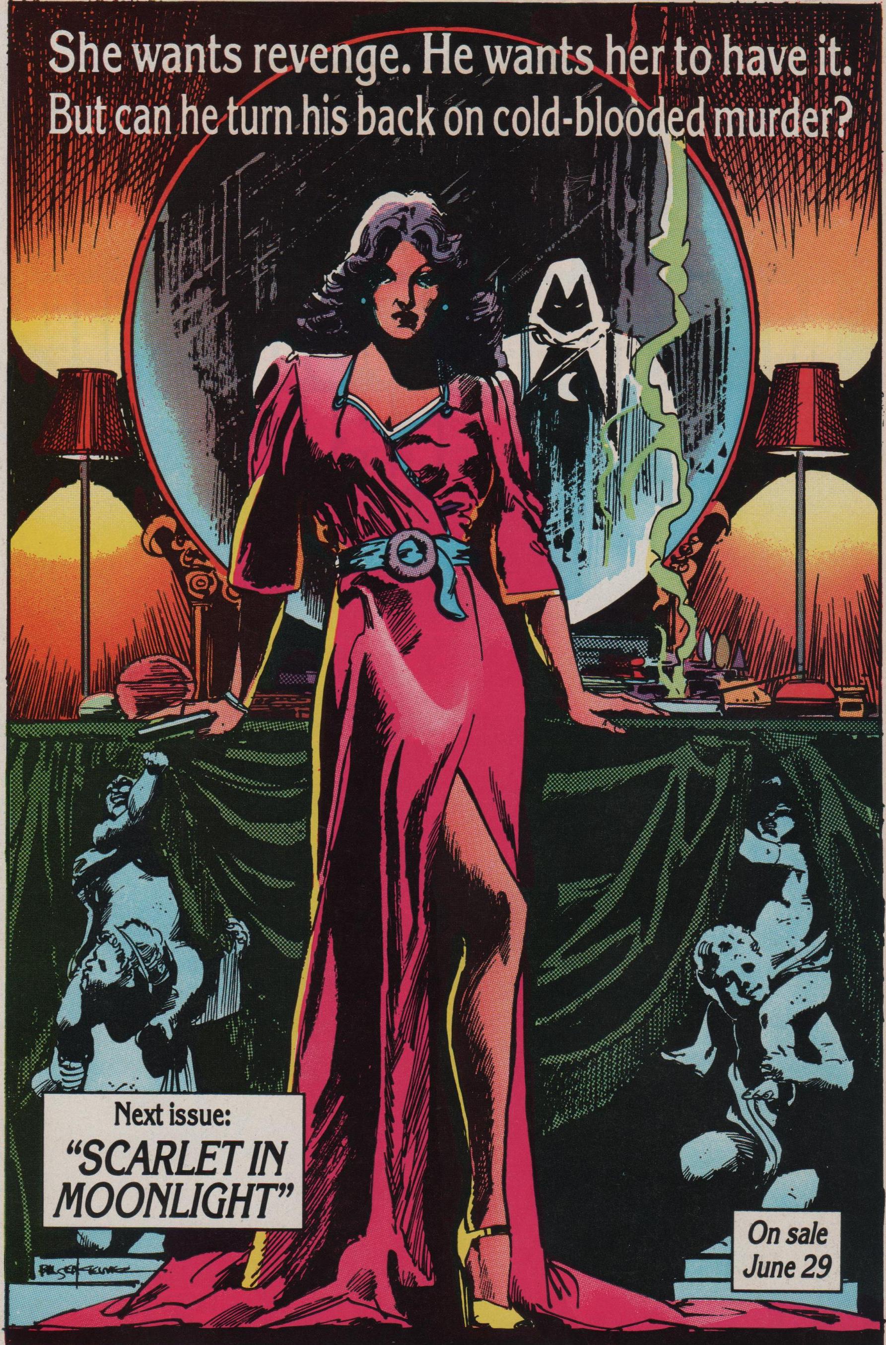 Even in this early stage of the title, you can see the beginnings of brilliance from Doug Moench (writer), and Bill Sienkiewicz (interior pencils and cover). Their collaboration on the title lasted quite a long time, and only gets better as you go! With inks by Frank Springer, Carl Gafford colors, Annette Kawecki on letters, and edited by Denny O’Neil!