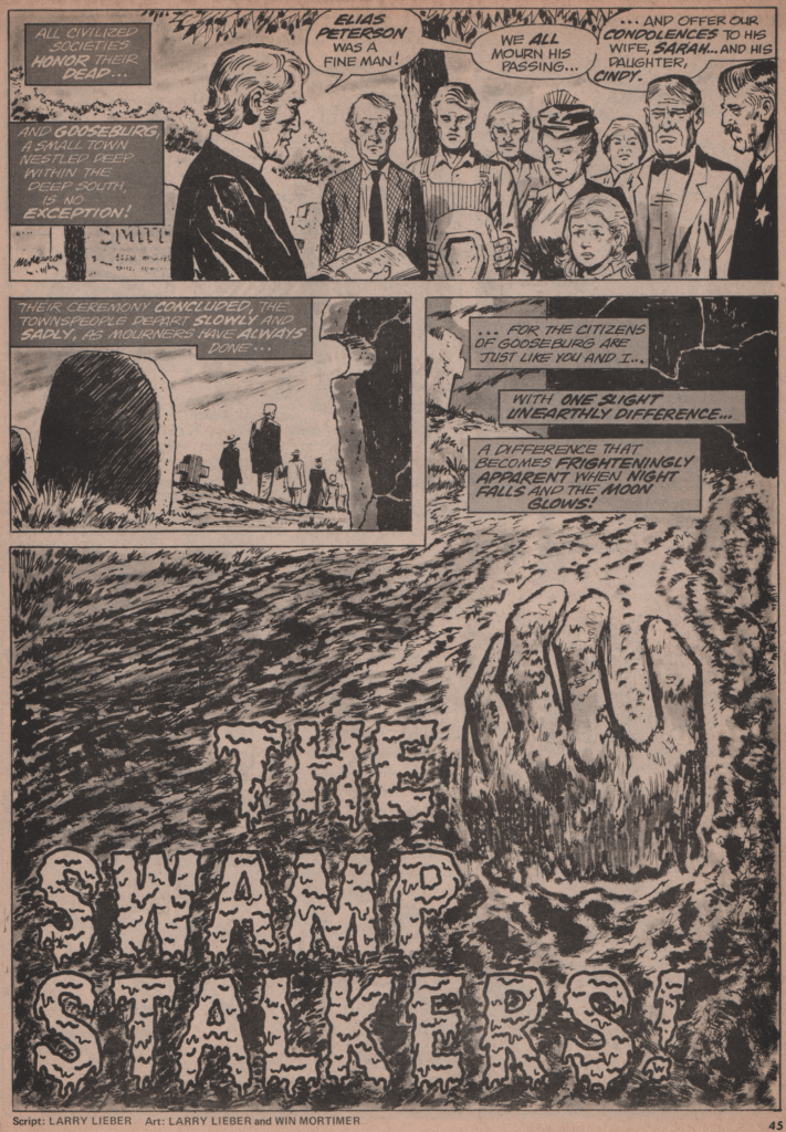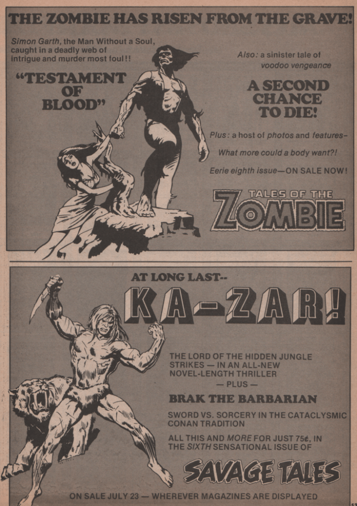 The second story in this issue, “More than Blood,” is about a school that keeps having its sports stars turning up with some affliction no doctor can figure out. In the middle of a sporting event, like a basketball game, for example, two premiere athletes drop over in a vegetative state. By the end of the story, though, we find out exactly why this is happening, and who’s responsible! Written by George Alec Effinger, with art by Billy Graham!
