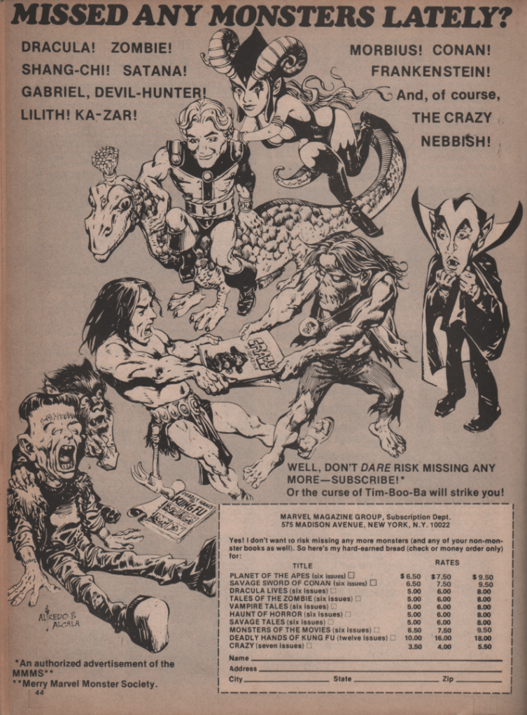 Lastly, we get a reprint, but it’s a good one! “The Girl Who Couldn’t Die!” In this mad scientist entry, we see Dr. Lee Fuller, as he’s living a great life. His career is doing well, and he has a beautiful girlfriend named Lisa. Unfortunately, Lisa died unexpectedly on the eve of their wedding. This was too much for Dr. Fuller, so he decided to exhume her corpse, and attempt to reanimate it! He eventually gets the result he’s looking for, but let’s just say that Lisa isn’t quite ready for the current situation. Art by Mort Lawrence (no writer credit given, possibly Stan Lee?). All kicked off with a great cover by Gil Kane and Tom Palmer!