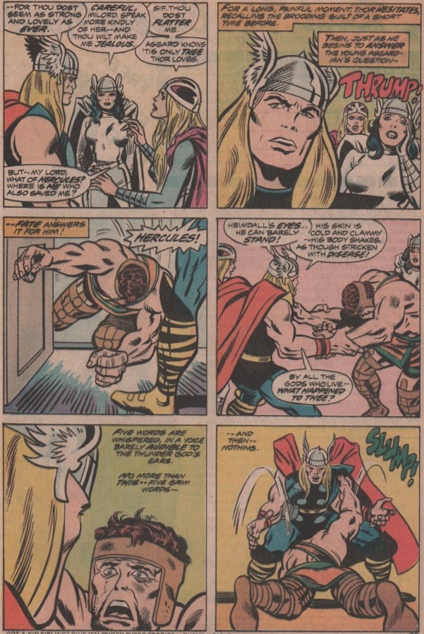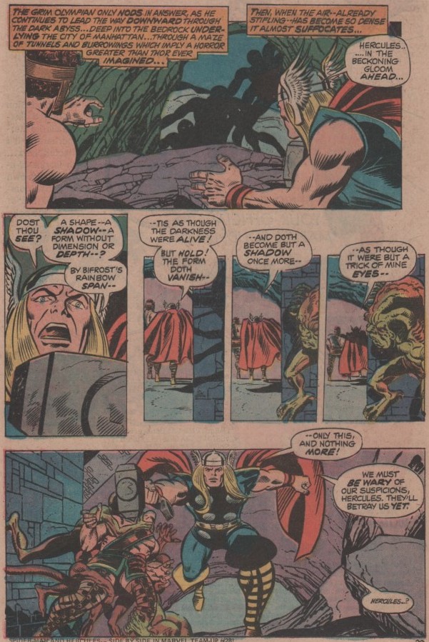 In these two issues, we see Thor, and his good buddy Hercules! The two heroes are trying to unravel a mystery about why people in New York are going absolutely crazy, with seemingly no explanation. There is murder, robberies, suicide, muggings, etc., the city is in mass hysteria. Hercules tries to help, but is assaulted by a dark, mysterious figure wearing a trench coat. Before he knows what’s going on, he’s dragged into the sewers by a horde of demons! He returns to the surface later, but the son of Zeus is visibly shaken, and in fear for his life!
