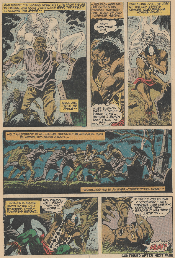 Later in 1972, Gerber scripted Adventure into Fear 11, his first shot at the character Man-Thing. This story was more akin to the Marvel horror books of the times, though, but certainly well scripted. In the next issue, we see Gerber as most remember him. Tackling the subject of racism (and for the early 1970s was nothing to over look), Gerber shows not just the evil of the subject, but an extremely good story that makes you think from a different perspective, which is always a good thing. Issue 12 really set the tone for Gerber’s work going forward, as he wrote a story about a hardcore racist and his killing of a black man (excellently rendered by Jim Starlin and Rich Buckler). Not a pleasant ending to this story, which drives his message home even more. His run on Man-Thing is my personal favorite of his works. The way he used a character that cannot speak, along with the framing characters (Richard Rory, who resembles Roy Thomas, Jenifer Kale, etc.) to tell all sorts of different stories is amazing. Oh, and he wrote two other characters that couldn’t speak (or rarely did in Simon Garth, the Zombie and The Living Mummy). This is something I can’t ever recall another writer even coming close to doing at his level.