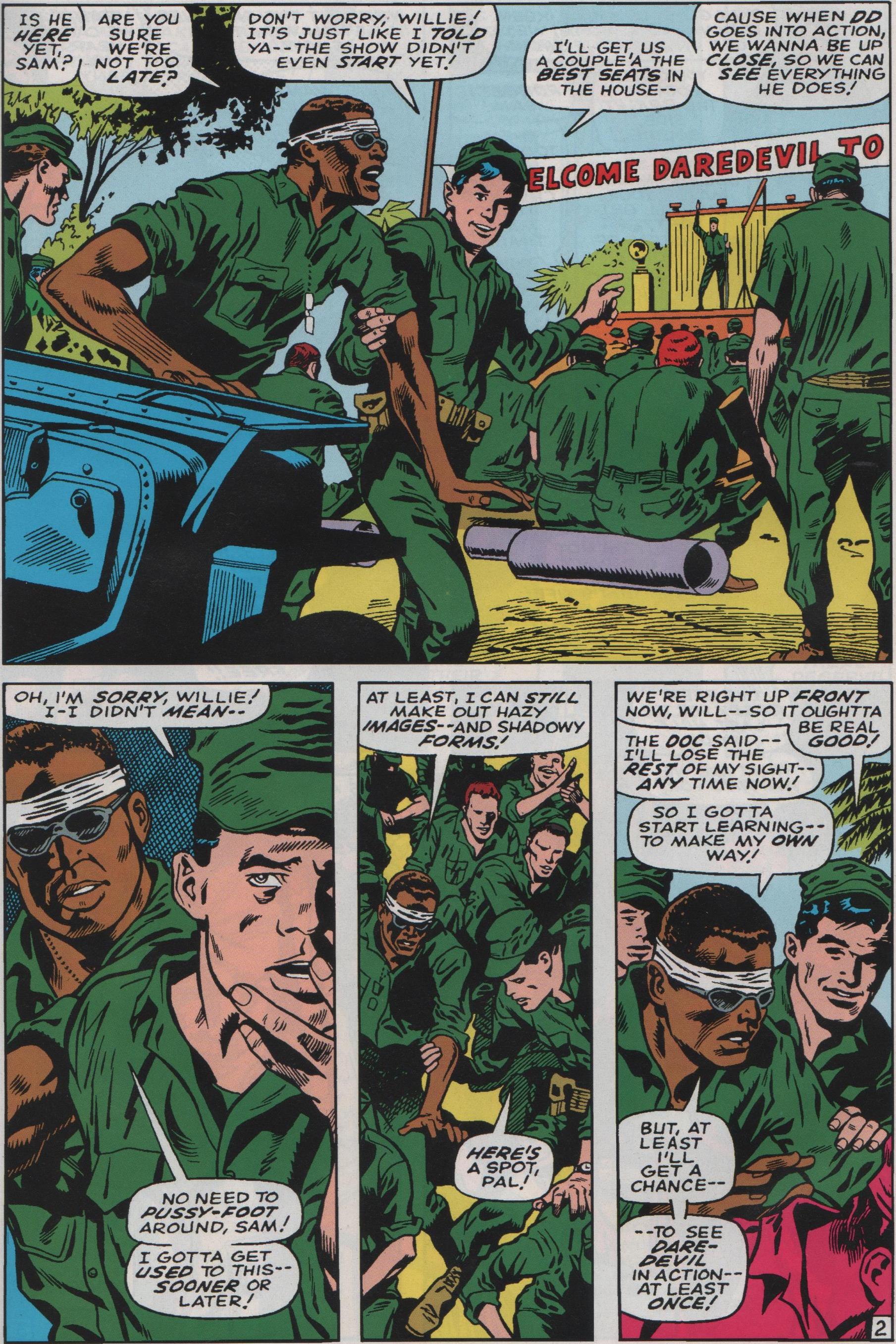 In this tale, we see a soldier, Willie Lincoln, who’s a black man who was wounded in Vietnam, and lost his sight. He’s still trying to get his bearings with his blindness, and it isn’t going well. Daredevil has agreed to entertain the troops with some of his acrobatic maneuvers, and Willie is a huge fan of his. They hit it off great, and DD tells Willie to look up a friend of his when he gets back to the states. The friend of course, is Matt Murdoch! It’s a great story that really hammers home the point of no matter what the color of your skin is, we’re all the same.