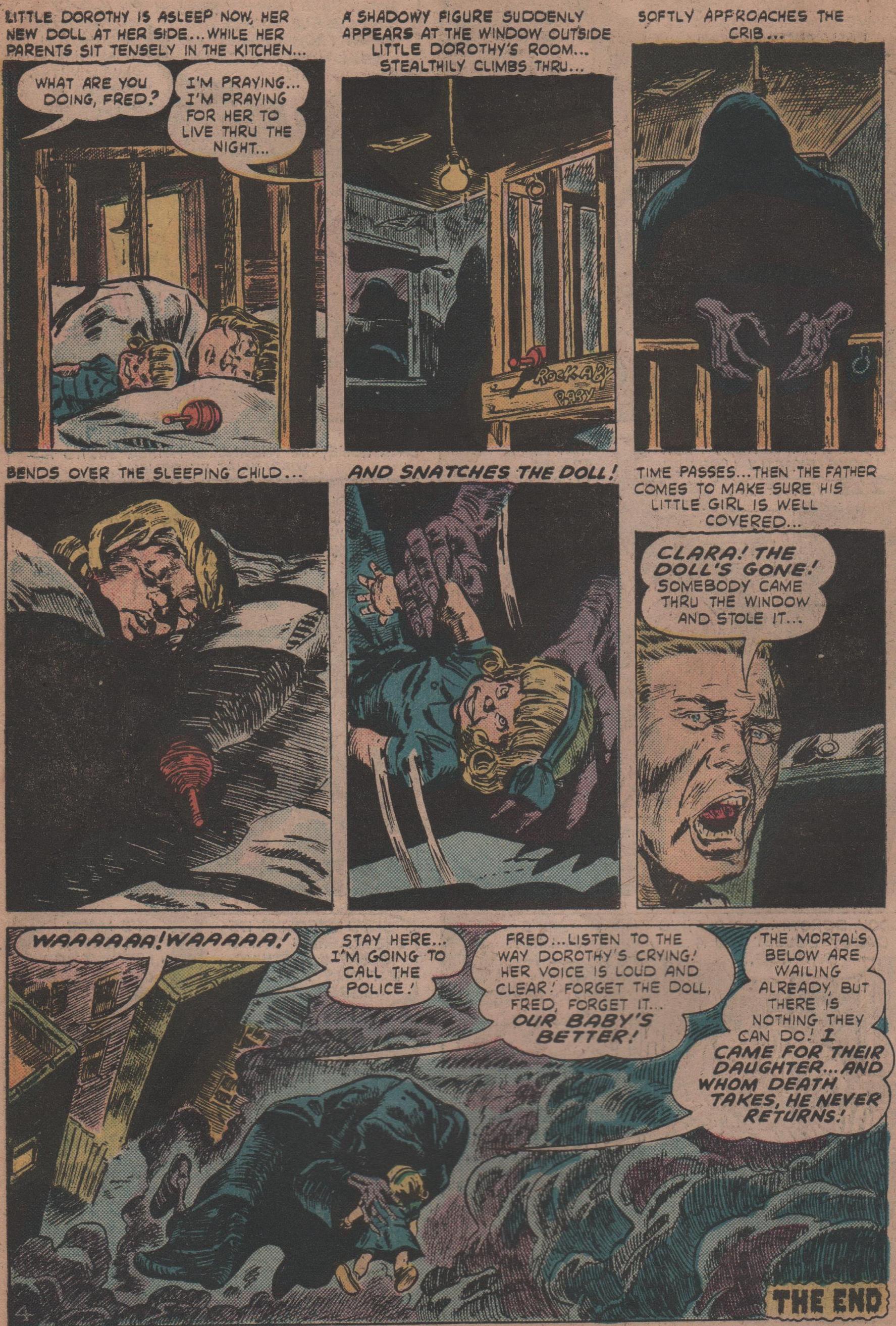 A man walks into a hotel on a rainy night. The clerk tells him there is no room, but the man notices one key still on its hook. The clerk tells him he was told to never give out that room key for some ominous reasons, but the man insists, and the clerk eventually relents. Once in the room, the man fires up a heater, but then glances toward the mirror. He jumps back in surprise, as he sees a frightening looking man behind him. As he turns around, the man is gone. He thinks to himself that the clerk’s story and the long day are getting to him, so decides to go to bed. His dreams become nightmares, though, and as he passes by the mirror, he sees a host of horrors, and he freaks out. He calls the front desk in a panic, but decides to play it cool and just asks for a wake up call. He heads back to bed, but the paranoia is getting to him. He creeps back over to the mirror, and he sees he’s surrounded by a crowd of monsters! Downstairs, the clerk hears a horrific scream coming from the room. He darts upstairs to investigate, but the room appears empty…until he looks in the mirror and sees the man dead, lying on the bed!