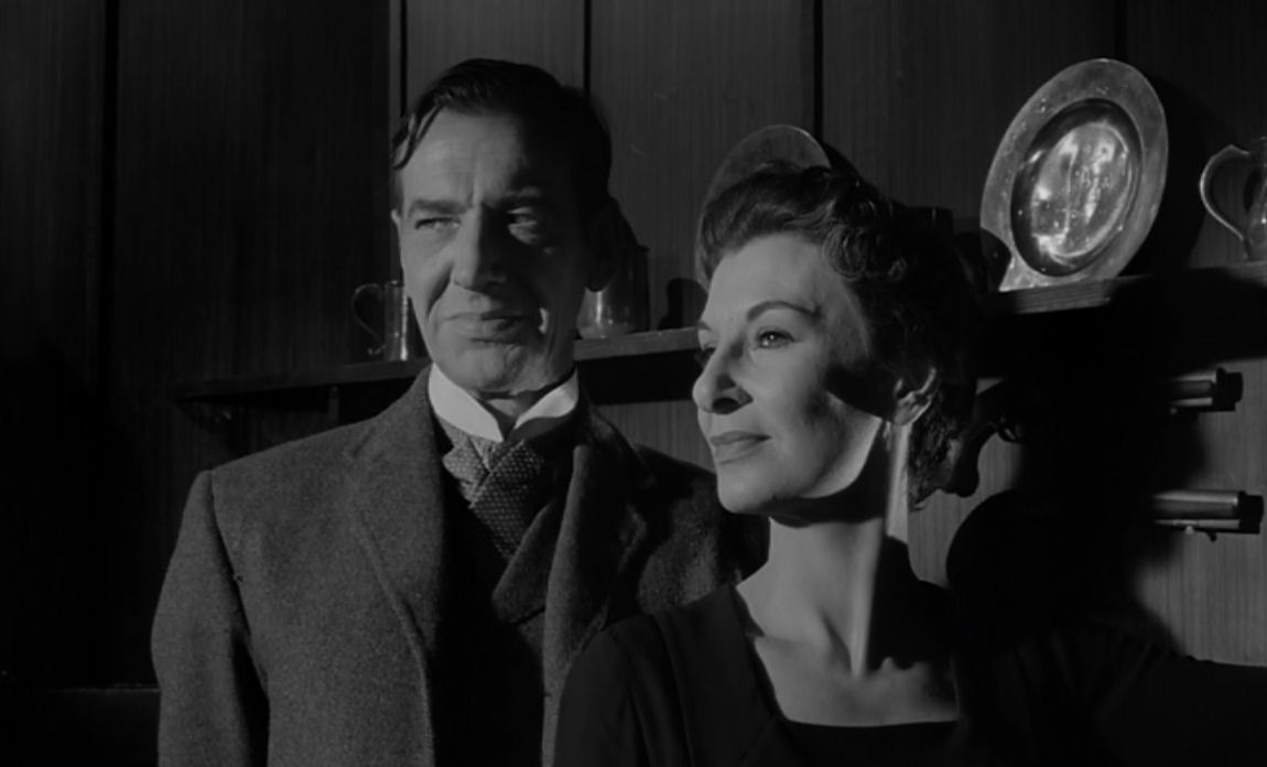 The following day, Nan heads out to the town of Whitewood, but seems to get lost in an eerie fog. She happens upon a gentleman and asks him for directions. He tells her the way, but warns her that the town is evil. She continues on, even after he warning. As she gets to a fork in the road, a man is walking nearby. He introduces himself as Jethrow Keane (Valentine Dyall – image below) and asks for a ride. She invites him in, and he begins to tell her a little about Whitewood. They eventually arrive in town, and their destination, the Ravens Inn. As Nan turns around to get her luggage, but then the man disappears! She heads inside and meets Lottie (Ann Beach), but before she can even try to communicate with her, the owner of the inn appears. We then are introduced to Mrs. Newless (Patricia Jessel – image below), who has a striking resemblance to the witch, Elizabeth Selwyn.