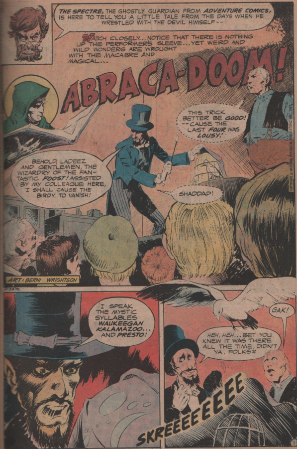 Pretty much shenanigans ensue for the rest of the story, but the highlight is or sure the gorilla-alien guy using his telepathy to tell a librarian to give him some classic novels (not at gunpoint as the cover shows). A little bit of a bait and switch there, but still, the story is comical, and extremely strange. Story/script by Otto Binder, art by Carmine Infantino and Joe Giella.