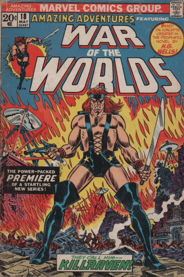 We see the attack from the aliens, similar to the one in the film (this attack is in 1901), but the aliens return after there first defeat, and they are better prepared this time. The second invasion brings the defeat of mankind, and youths are taken from their homes to be trained for fighting for entertainment purposes. One of these youths is Killraven. He trains and becomes the most lethal killer of all, but never forgets how his mother and brother were callously murdered by a henchman of the aliens, named Dr. Raker.