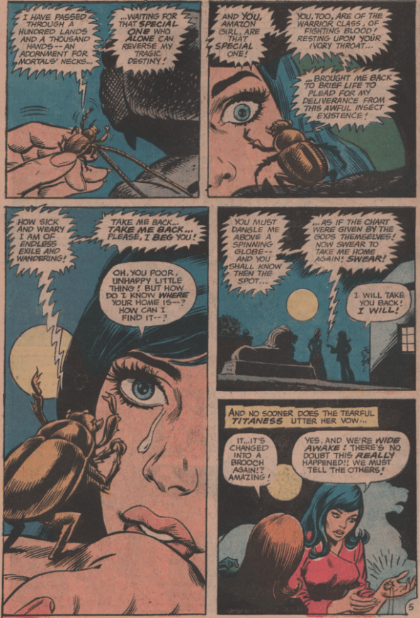 This issue revolves around a necklace, but not just any piece of jewelry. It’s a scarab that has some sort of sentience, and it calls out to Wonder Girl. It tells her that it needs to go back to where it came from, so it’s off to the Yucatan. Robin, Kid Flash, Wonder Girl, Speedy, and the Guardian must face off with Crocodiles, Leopards, snakes, and all sorts of magical shenanigans to get out alive!