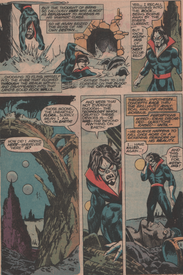 Later in 1972, Gerber scripted Adventure into Fear 11, his first shot at the character Man-Thing. This story was more akin to the Marvel horror books of the times, though, but certainly well scripted. In the next issue, we see Gerber as most remember him. Tackling the subject of racism (and for the early 1970s was nothing to over look), Gerber shows not just the evil of the subject, but an extremely good story that makes you think from a different perspective, which is always a good thing. Issue 12 really set the tone for Gerber’s work going forward, as he wrote a story about a hardcore racist and his killing of a black man (excellently rendered by Jim Starlin and Rich Buckler). Not a pleasant ending to this story, which drives his message home even more. His run on Man-Thing is my personal favorite of his works. The way he used a character that cannot speak, along with the framing characters (Richard Rory, who resembles Roy Thomas, Jenifer Kale, etc.) to tell all sorts of different stories is amazing. Oh, and he wrote two other characters that couldn’t speak (or rarely did in Simon Garth, the Zombie and The Living Mummy). This is something I can’t ever recall another writer even coming close to doing at his level.
