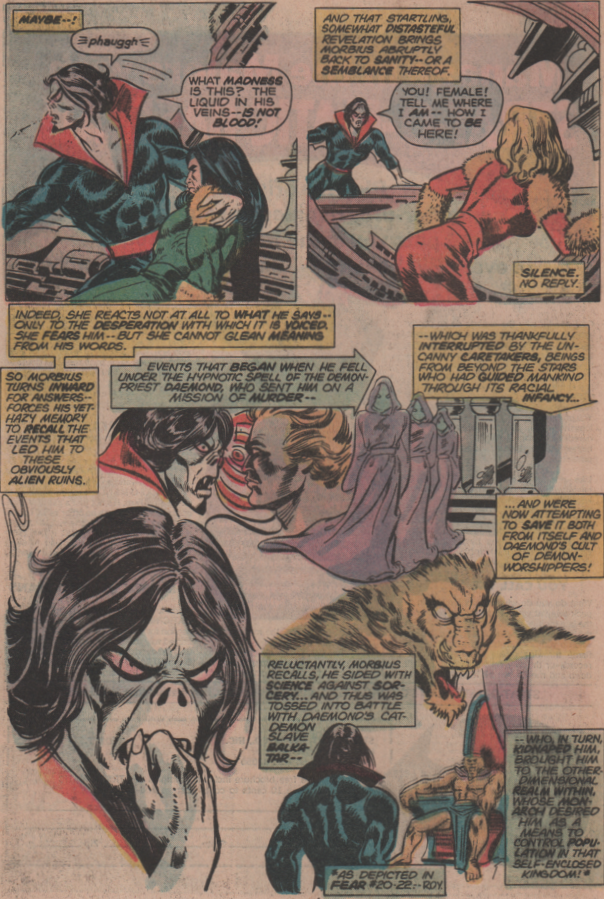 Later in 1972, Gerber scripted Adventure into Fear 11, his first shot at the character Man-Thing. This story was more akin to the Marvel horror books of the times, though, but certainly well scripted. In the next issue, we see Gerber as most remember him. Tackling the subject of racism (and for the early 1970s was nothing to over look), Gerber shows not just the evil of the subject, but an extremely good story that makes you think from a different perspective, which is always a good thing. Issue 12 really set the tone for Gerber’s work going forward, as he wrote a story about a hardcore racist and his killing of a black man (excellently rendered by Jim Starlin and Rich Buckler). Not a pleasant ending to this story, which drives his message home even more. His run on Man-Thing is my personal favorite of his works. The way he used a character that cannot speak, along with the framing characters (Richard Rory, who resembles Roy Thomas, Jenifer Kale, etc.) to tell all sorts of different stories is amazing. Oh, and he wrote two other characters that couldn’t speak (or rarely did in Simon Garth, the Zombie and The Living Mummy). This is something I can’t ever recall another writer even coming close to doing at his level.