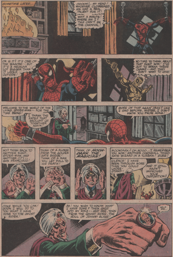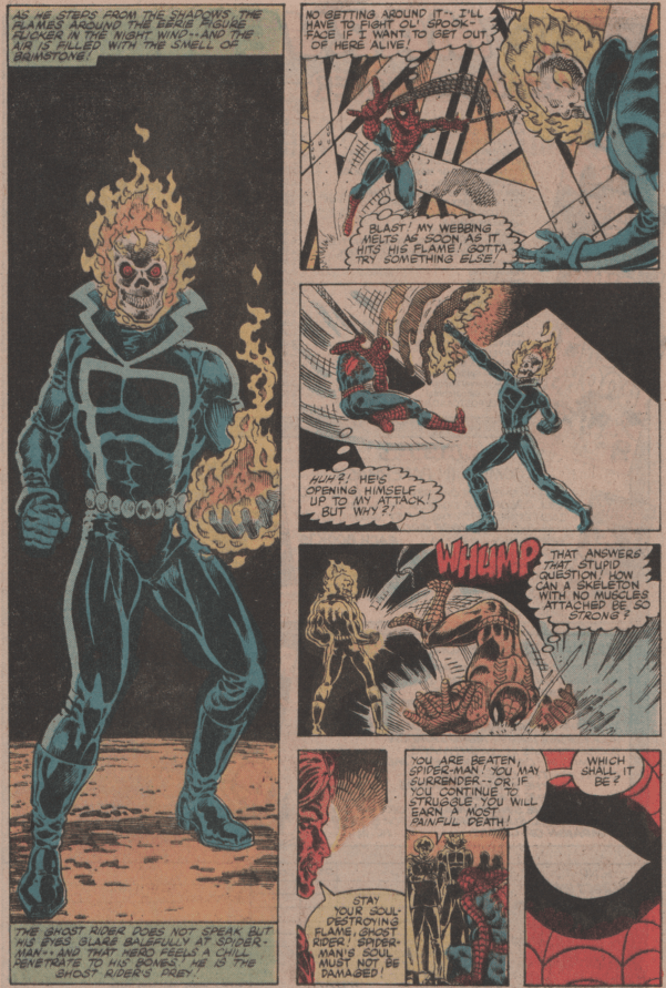 Then I quit Nightstalkers. Suddenly I get a call from Mark: the Midnight Sons office had decreed that it was no longer good enough tie-ins line up with what’s happening in the major storyline that month, they had to line up with what was going on that week. Which, when you’re tying a monthly in with a weekly series, is nuts. Even more nuts is abruptly deciding to sabotage one of the only two books that even deigned to play along with you. On top of everything, it really screwed up the Spec schedule & instantly turned the book really late, something my run never recovered from. As was the case at the time, solicitations had already gone out, & changing the contents would render the book returnable, a virtually unpardonable crime from upper management’s point of view whatever the circumstance. Then editor-in-chief Tom deFalco gave Mark permission to do that, but Mark, who was also between a rock & a hard place with it, understandably didn’t want “turned books returnable” on his permanent record. That’s the kind of milieu it was behind the scenes. So Mark & I spent an afternoon cobbling together a new story that didn’t really make much sense & had a ridiculously unimpressive threat but sort of sideways but not really connected to Midnight Sons, basically just enough to keep the solicitation valid, & everyone involved rushed like mad to get it out. There was no time & no space to include any of the little bits I’d wanted in my Spider-Man stories (my own view of Spider-Man was locked in place by the Lee-Ditko issues) & by the time the two issues were done I was just tired of it. By the time we were working on the next issue, first of my last two-parter, I was getting art pages faxed to me at 1PM my time telling me I had to get half an issue scripted & back to them before 2 or we’d miss shipping. Somewhere in the few seconds between 209 & 210 Mark called to suggest maybe things weren’t working out. It wasn’t a secret. They weren’t. My enthusiasm for the book was dead & gone.