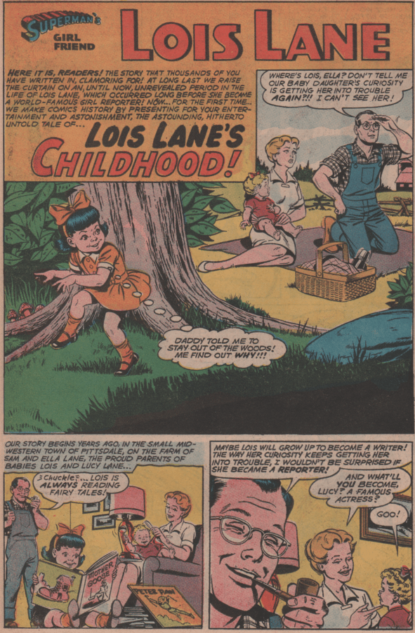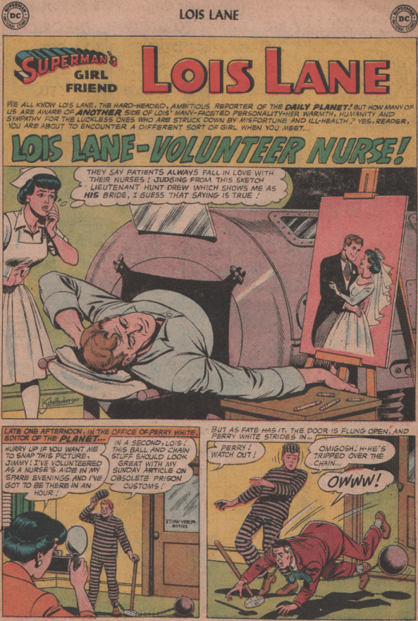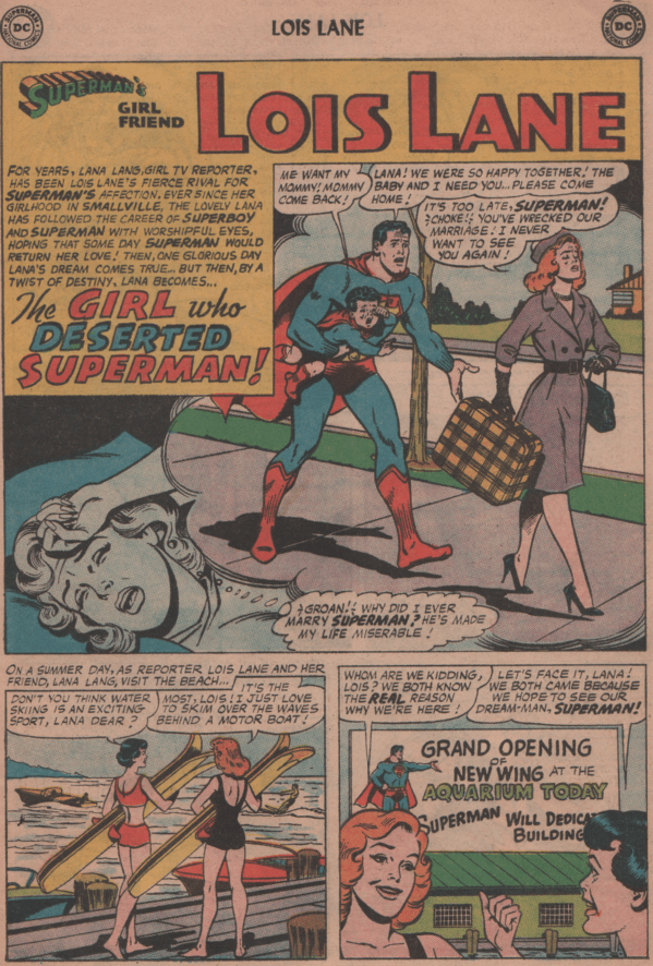 Finally, we get “The Two Faces of Superman!” In this one, Lois has a blind date with a guy, but wants to chase Superman instead, so she makes herself look less than desirable, so the blind date will take her home early. He does, then the date with Superman commences, but he saw her actions with the blind date and teaches her a lesson! Written by Jerry Coleman and art by Kurt Schaffenberger.